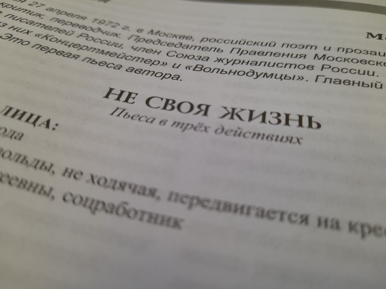 4 января в 16.00 в Центральной городской библиотеке им. А.П. Чехова состоится читка пьесы «Не своя жизнь». Автор пьесы — Максим Замшев, главный редактор «Литературной газеты», пьеса опубликована в журнале региональной культуры «Балтика» № 3(72)-2023.