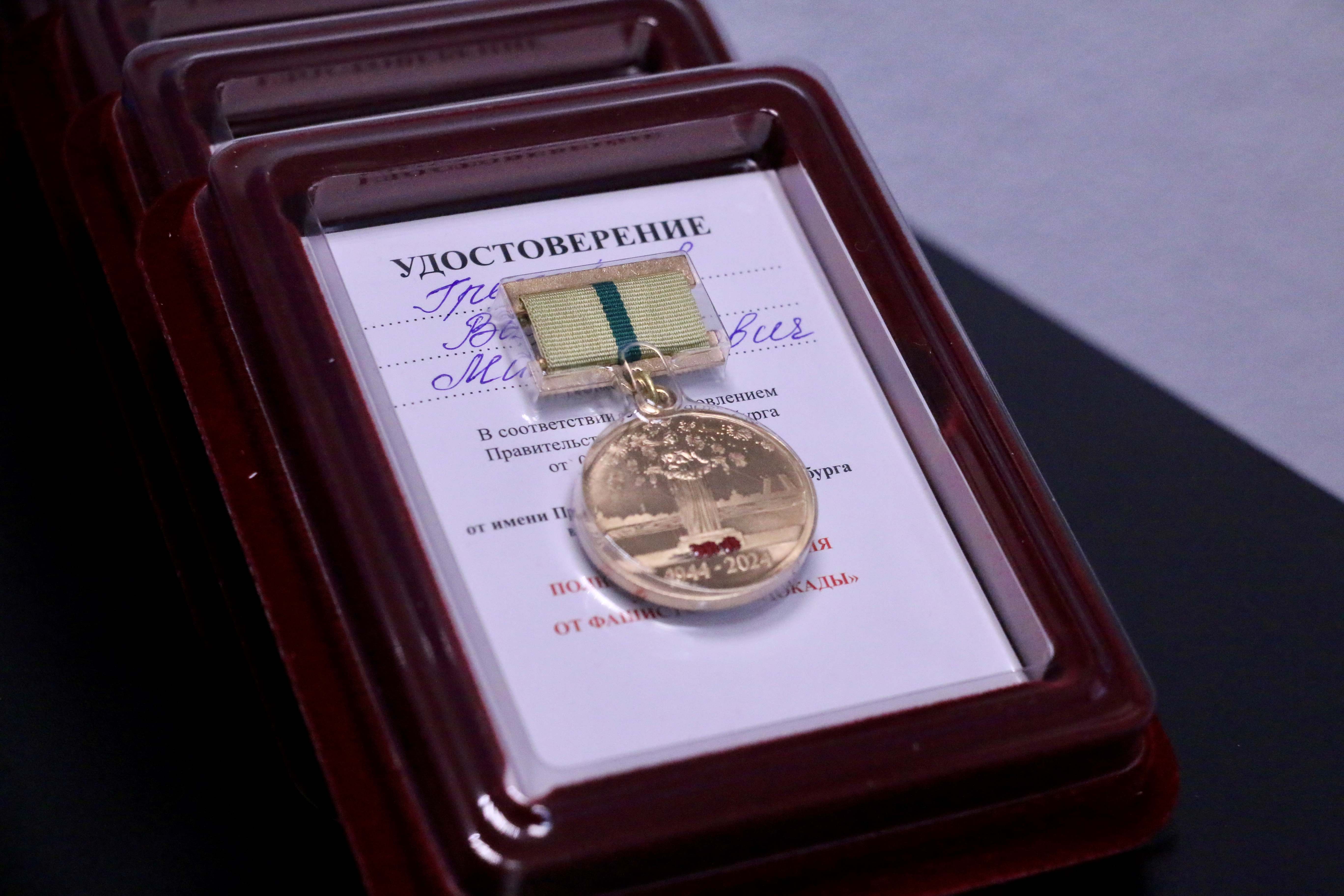 Глава города Олег Аминов и заместитель главы городской администрации, председатель комитета по социальной политике Алексей Силанов вручили ветеранам-блокадникам почетные знаки «В честь 80-летия полного освобождения Ленинграда от фашистской блокады».