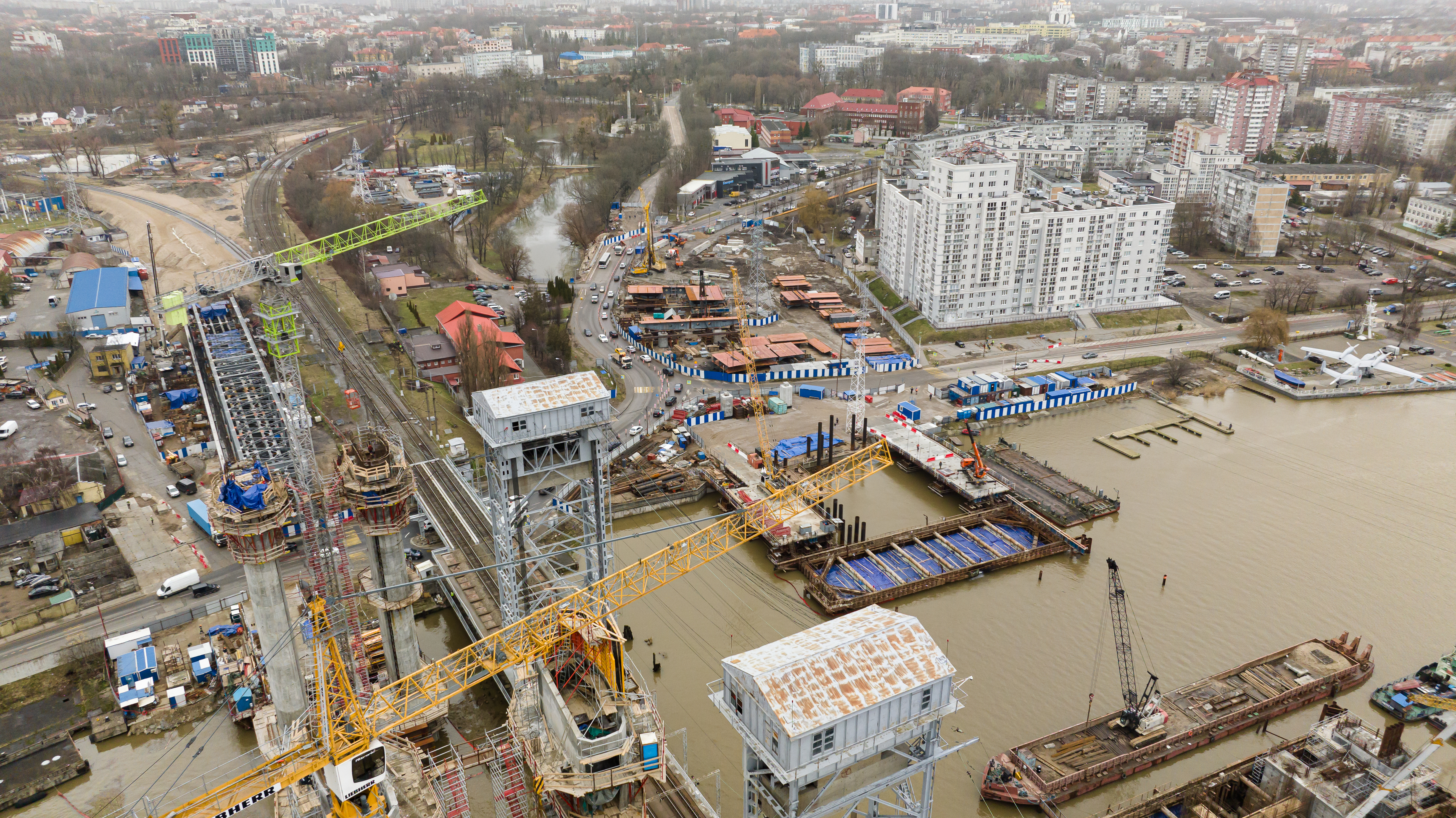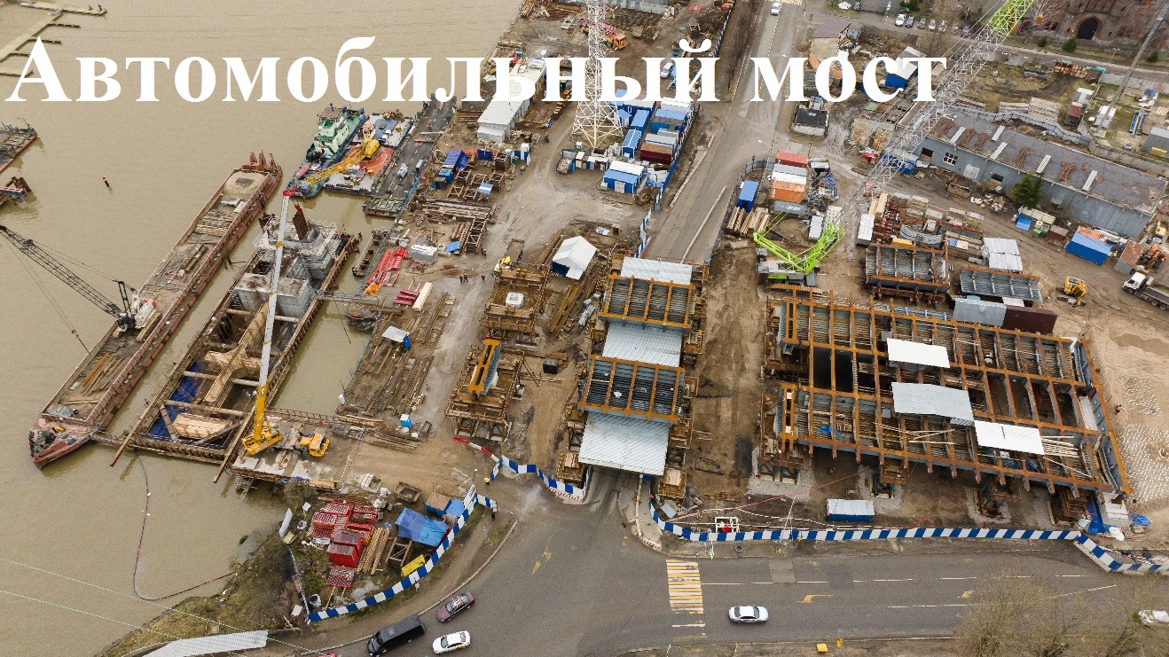 Строительно-монтажные работы по графику идут на опорах, сваях, подпорных стенках будущего моста через Преголю, продолжается подготовка к переустройству газопровода, устройство основания для переноса трансформаторной подстанции, погружение ленточных дрен на левом берегу и установка датчиков мониторинга слабых грунтов.