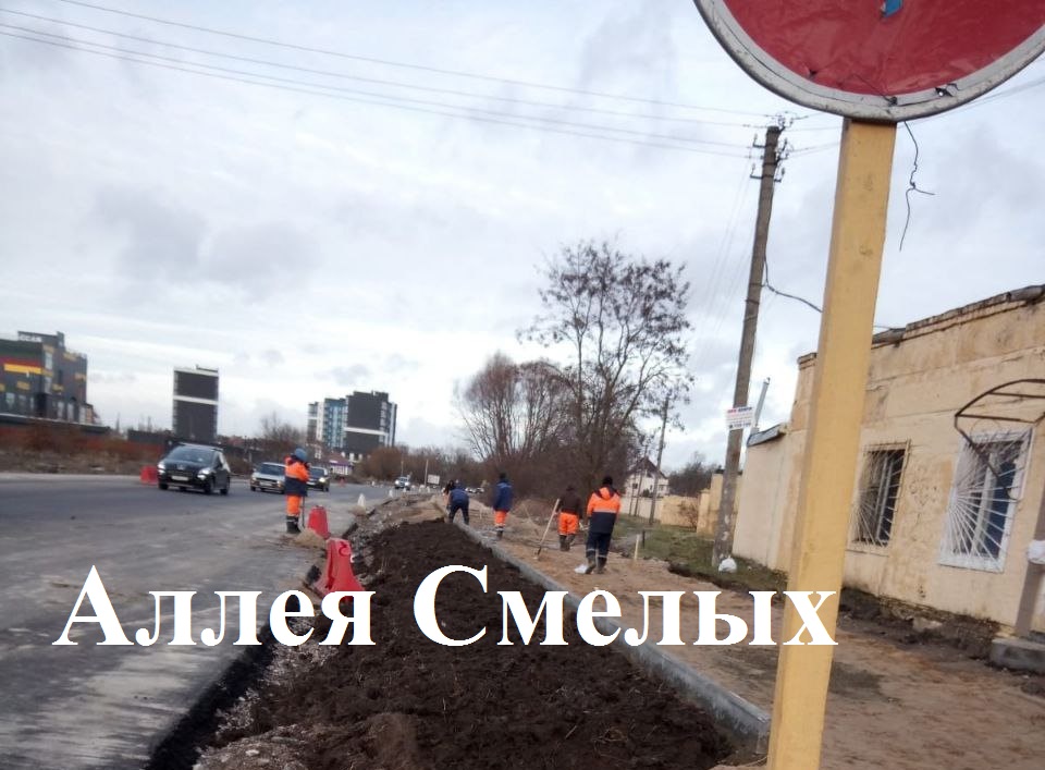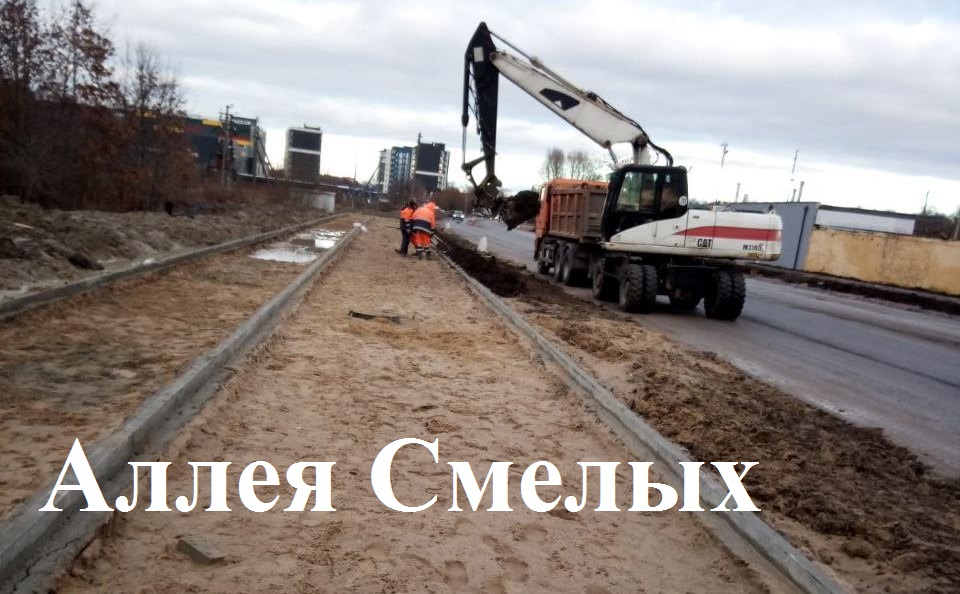 На реконструкции Аллеи Смелых дорожники готовят основание под тротуар и велодорожку, выставляют бортовой камень на участке от ул. Понартской до Карамзина.