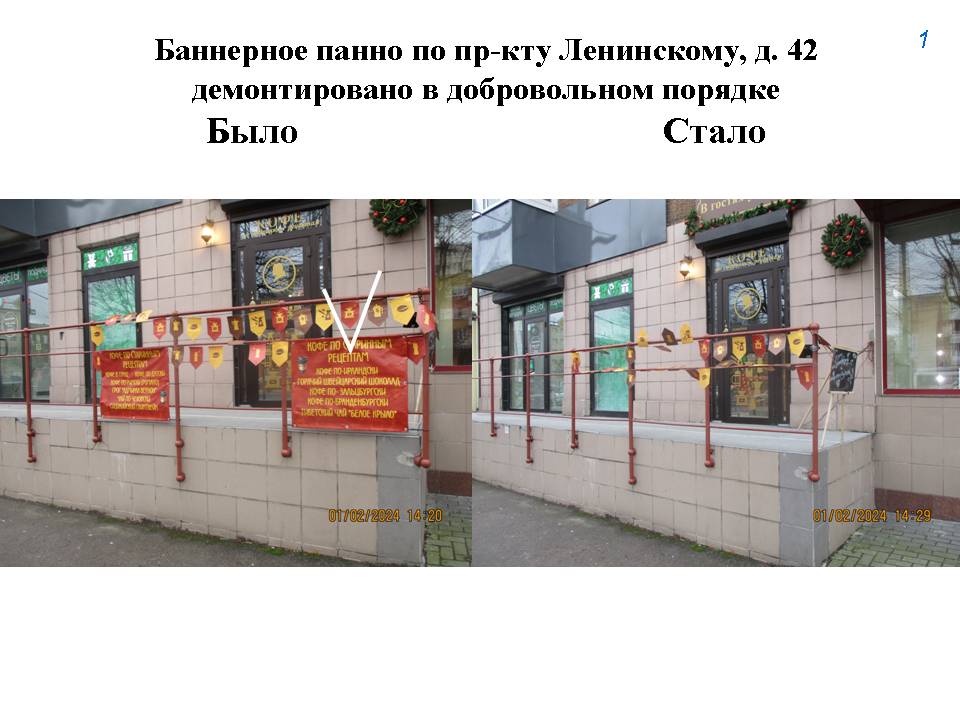 Незаконные баннерные панно убрали на Ленинском проспекте д.42, ул.Грига д.2-8.