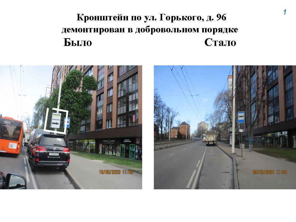 С опоры электропроводов на ул. Горького д. 96 владелец снял рекламный кронштейн.