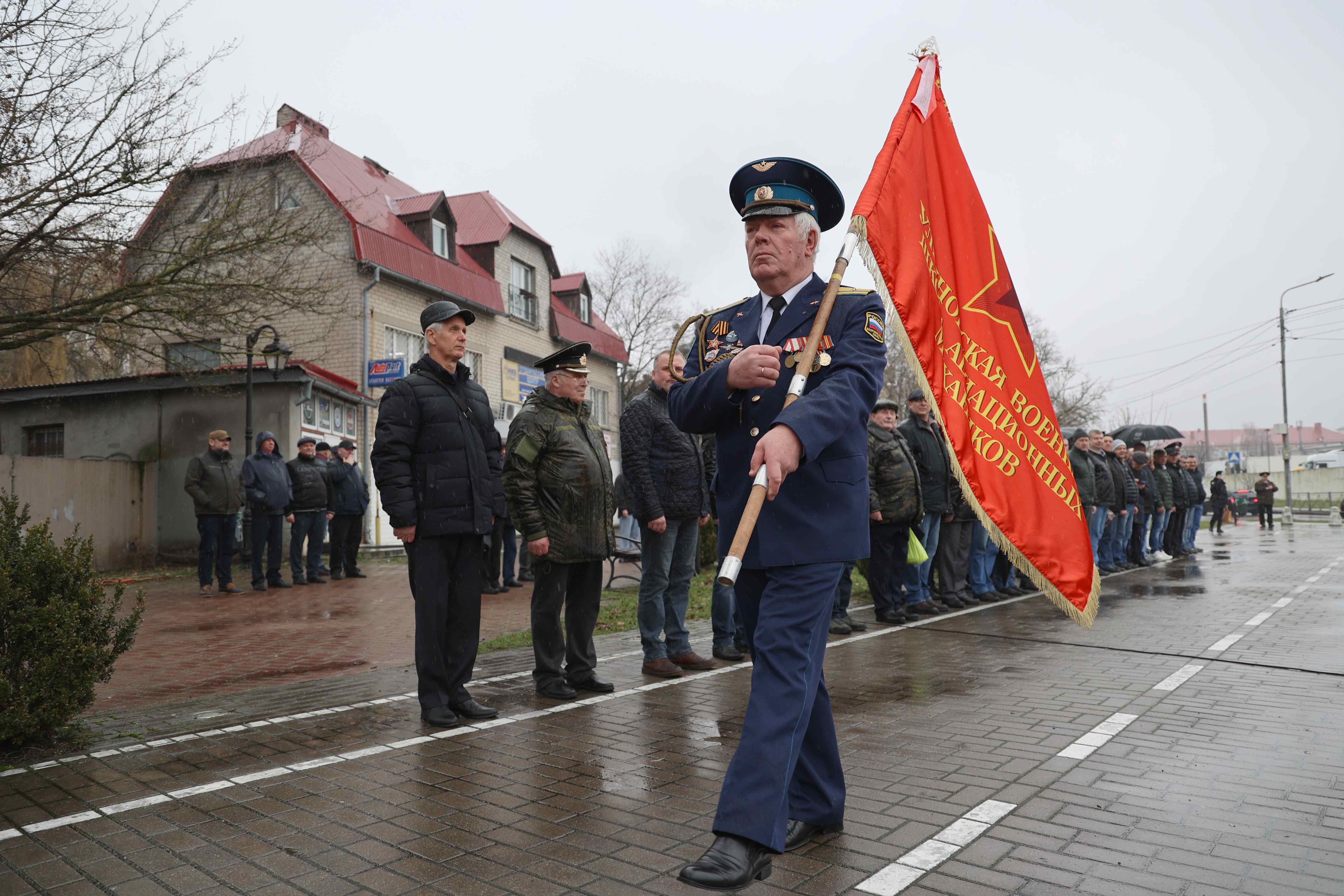 Вынос знамени училища, дружеские объятия, воспоминания о времени обучения, традиционное фото на память - для встречи старых товарищей дождь не стал помехой.