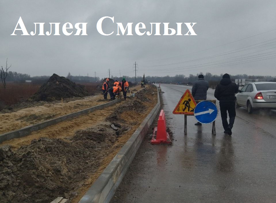 На реконструкции Аллеи Смелых дорожники устанавливают бортовой камень, продолжают отсыпку в районе локальных очистных сооружений и прокладку сетей «Безопасного города».