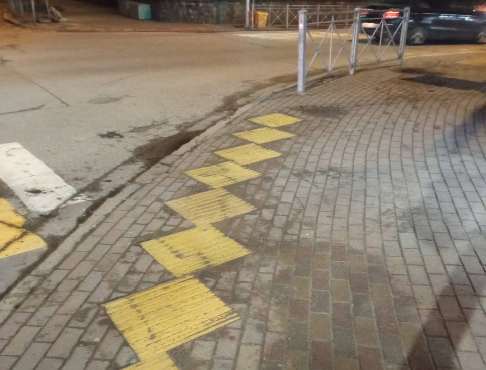 На тротуаре по ул. Чайковского демонтируют старую плитку и регулируют бортовой камень на чётной стороне улицы.