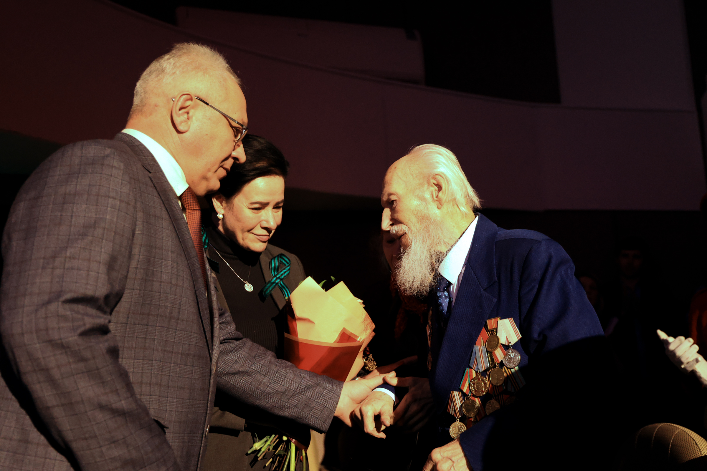 В настоящее время на территории Калининградской области проживает 11 участников штурма Кенигсберга. В зале присутствовал ветеран-штурмовик Ковязин Иван Павлович. Зал приветствовал ветерана стоя. В его адрес звучали несмолкаемые аплодисменты и слова благодарности. Иван Павлович был призван на фронт в январе 1943 года, боевое крещение принял в Минско-Бобруйской операции, служил заряжающим миномётчиком, принимал участие в штурме Кенигсберга и взятии Пиллау, прошёл с боями реки Висла и Одер, а победу встретил на подступах к Берлину.