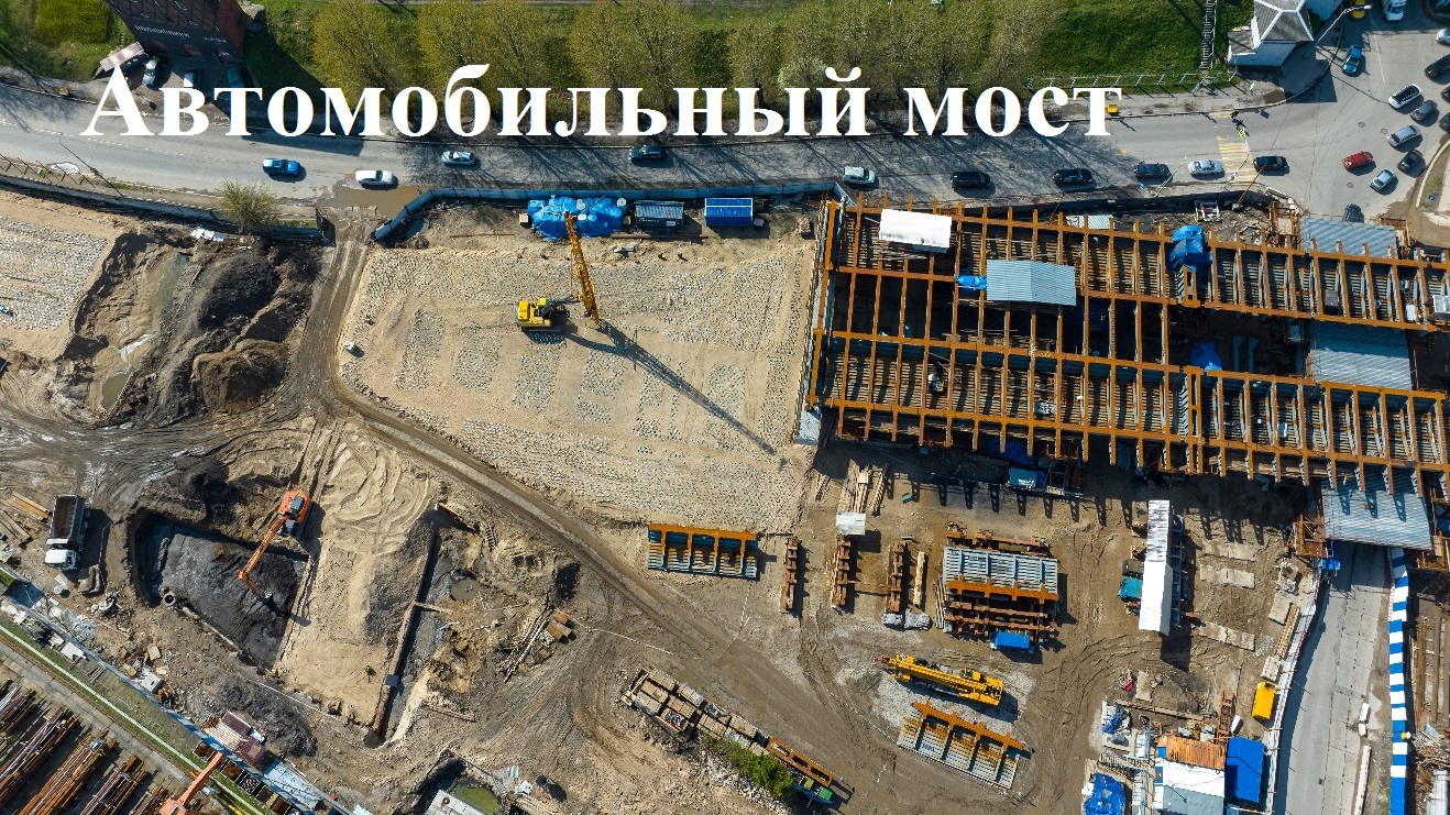 Строители автомобильного моста на уходящей неделе выполняли: переустройство напорной канализации от КНС - 8 (по ул. Железнодорожной) устроен временный объезд, ведется погружение шпунта для дальнейшей разработки котлована; переустройство теплосети; переустройство высоковольтной линии (демонтаж плитки, разработка траншеи на участке ул. Портовая, пилотное бурение первой нитки под рекой для кабеля 110 кВ); переустройство дождевой канализации (устройство фундамента в районе опоры № 7); переустройство сети газоснабжения (подготовка основания дна траншеи ул. Генерала Буткова); усиление грунтов (произведена балластировка участка газопровода, выполнена обратная подсыпка 100 мм над трубопроводом с уплотнением, уложена сигнальная лента (ул. Генерала Буткова), выполнено пилотное бурение участка под прокол 600 мм (под ул. Железнодорожная); устройство вертикальных ленточных дрен (левый берег); опора 4 - армирование тела опоры, установка опалубки, бетонирование опоры 50 %, уход за бетоном; опора 5 (армирование тела опоры, установка опалубки, бетонирование «Тело» опоры 80%, уход за бетоном, армирование «Башня» опоры 10%); подпорная стенка ПС-1 (бурение и бетонирование БНС, армирование и бетонирование ростверка 70 %); ПС-3 (Армирование и бетонирование ростверка 80 %, армирование тело опоры 50 %); ПС 1-4 — укрупнительная сборка ортотропных плит на стапелях, сборка металлоконструкций; ПС 5-8 — сборка металлоконструкций пролетных строений.
