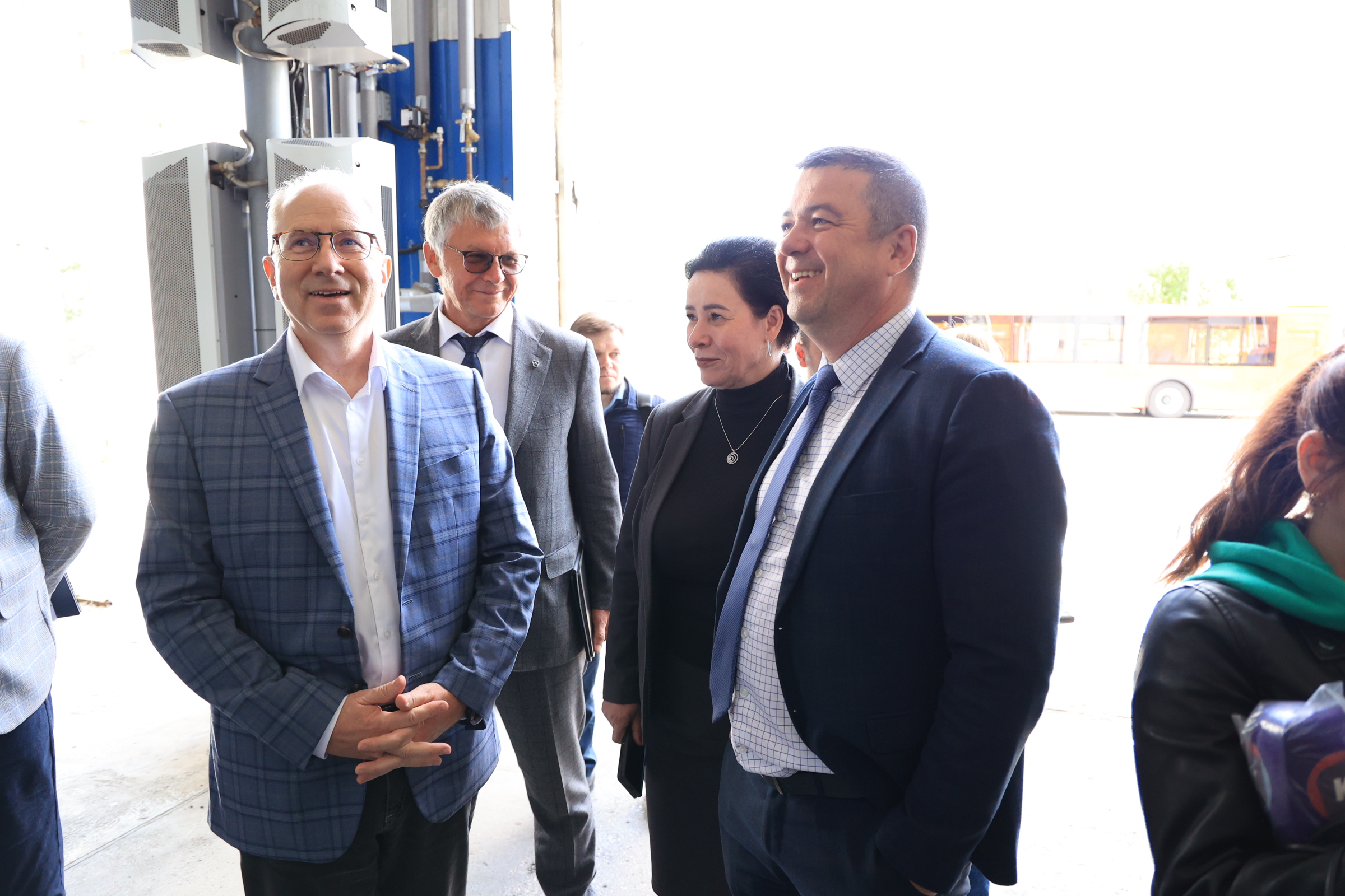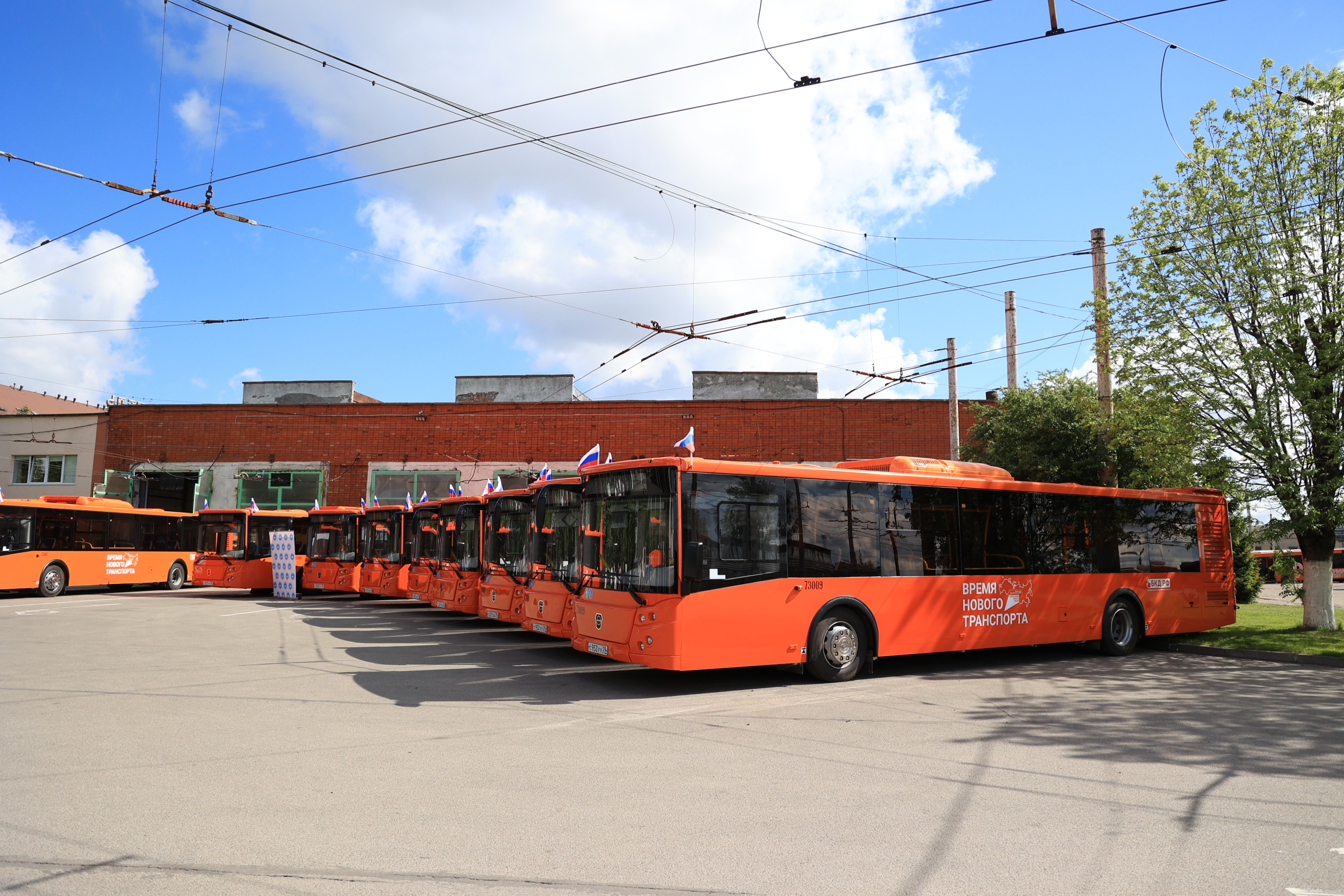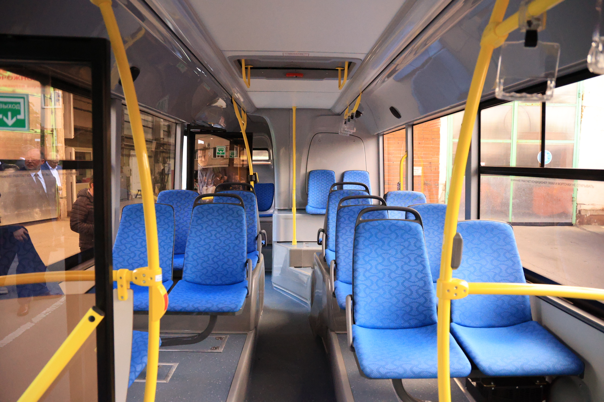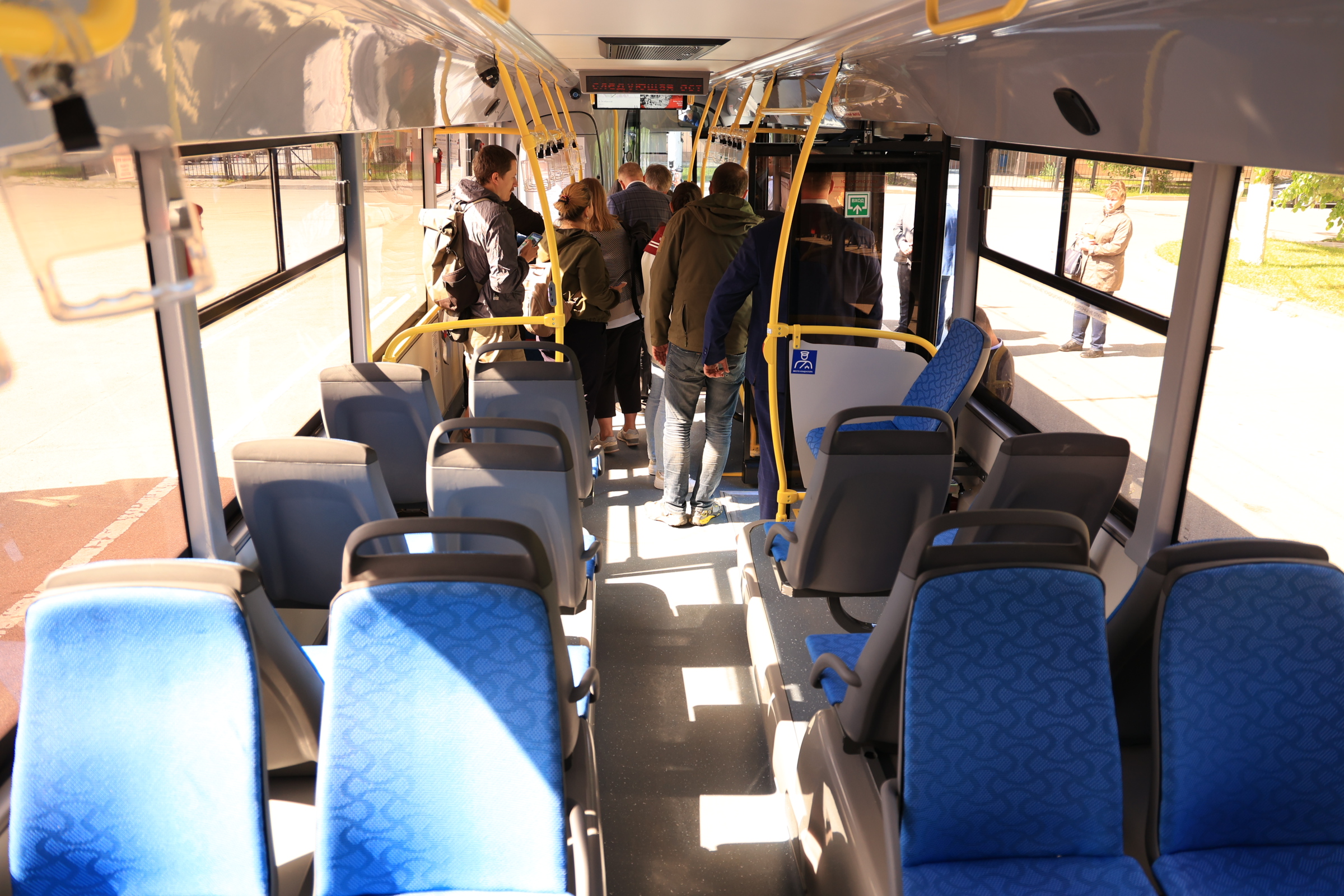 Муниципальный перевозчик выпускает на линии новые автобусы, одними из первых пассажиров стали глава администрации города и зампред регионального правительства.