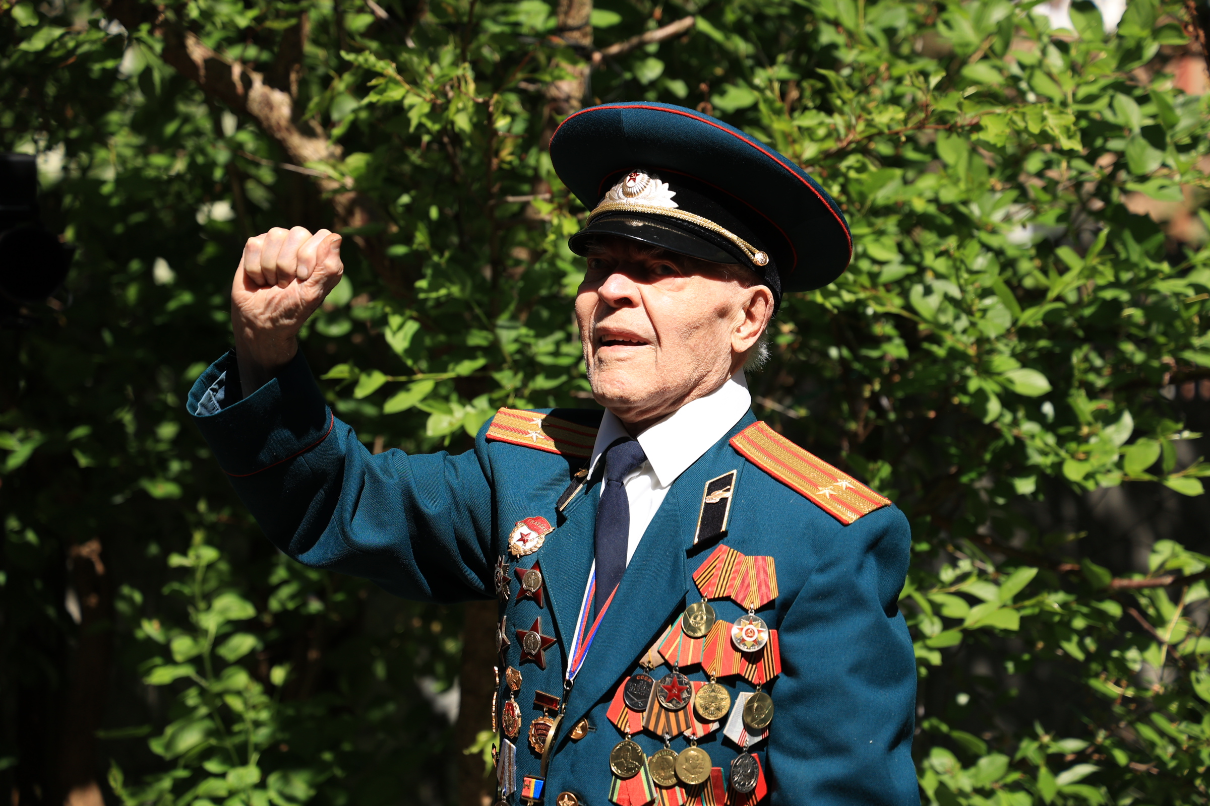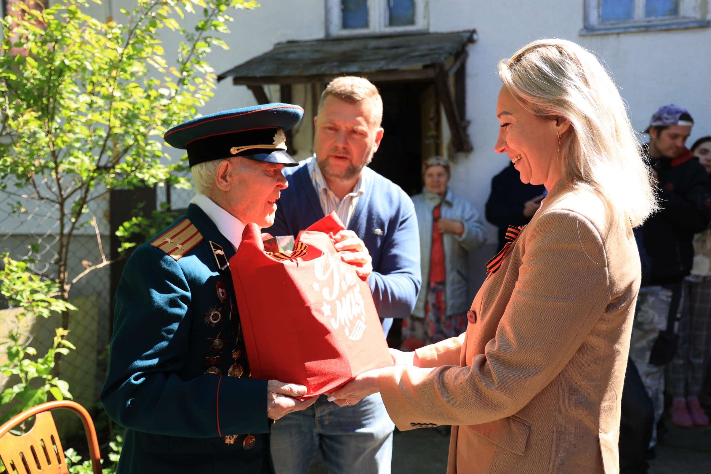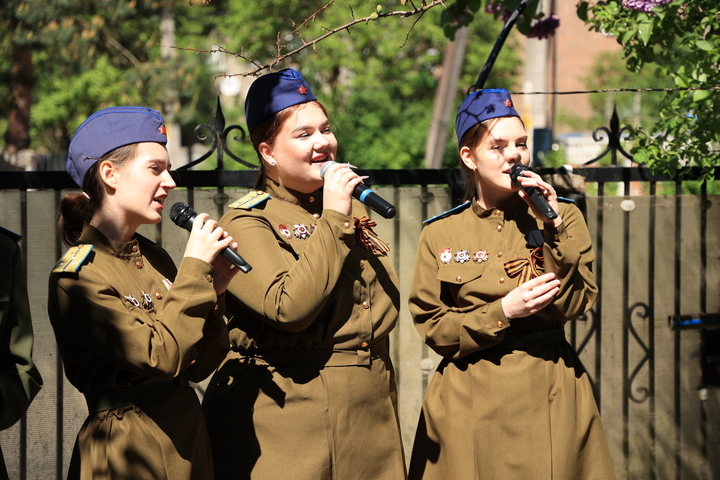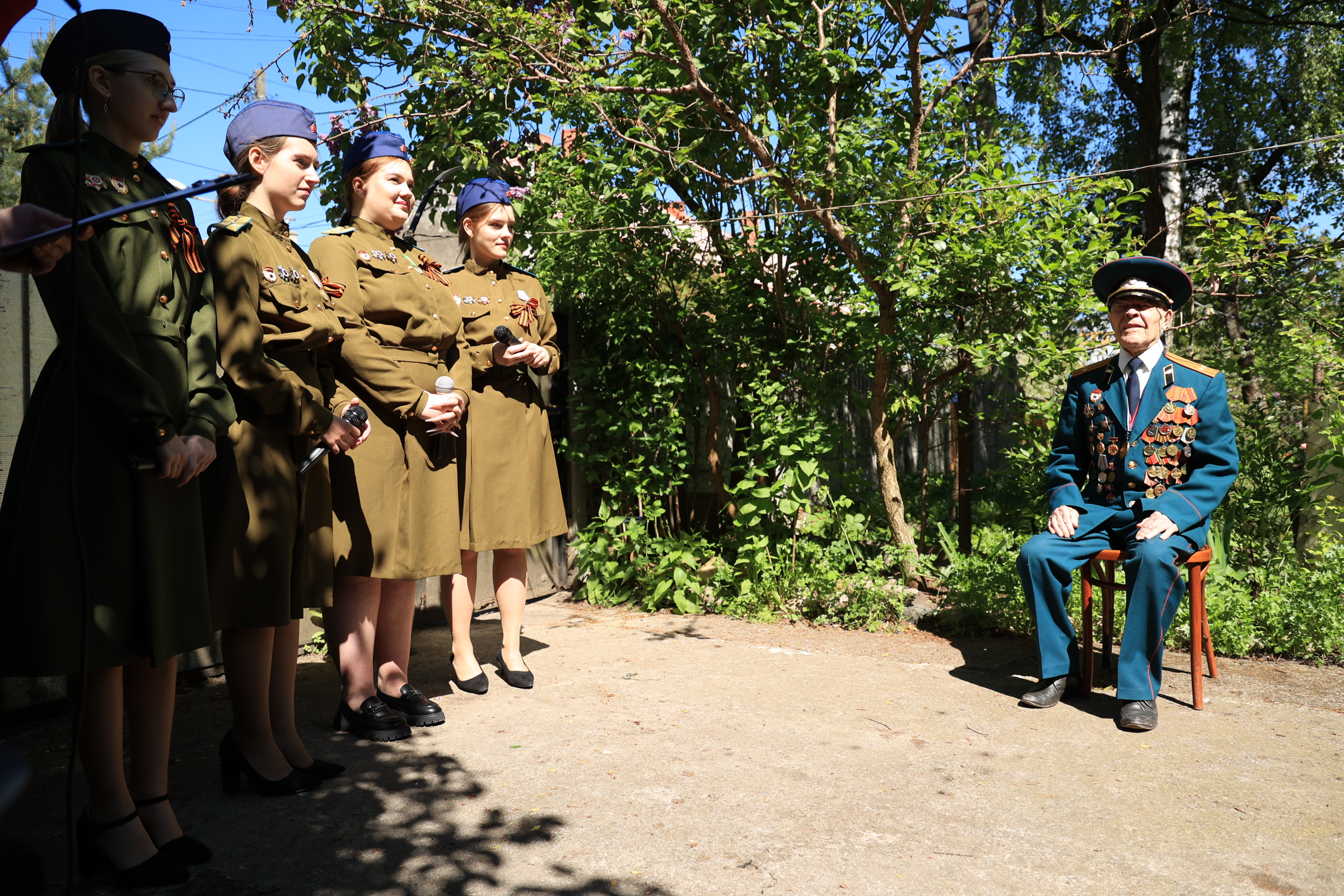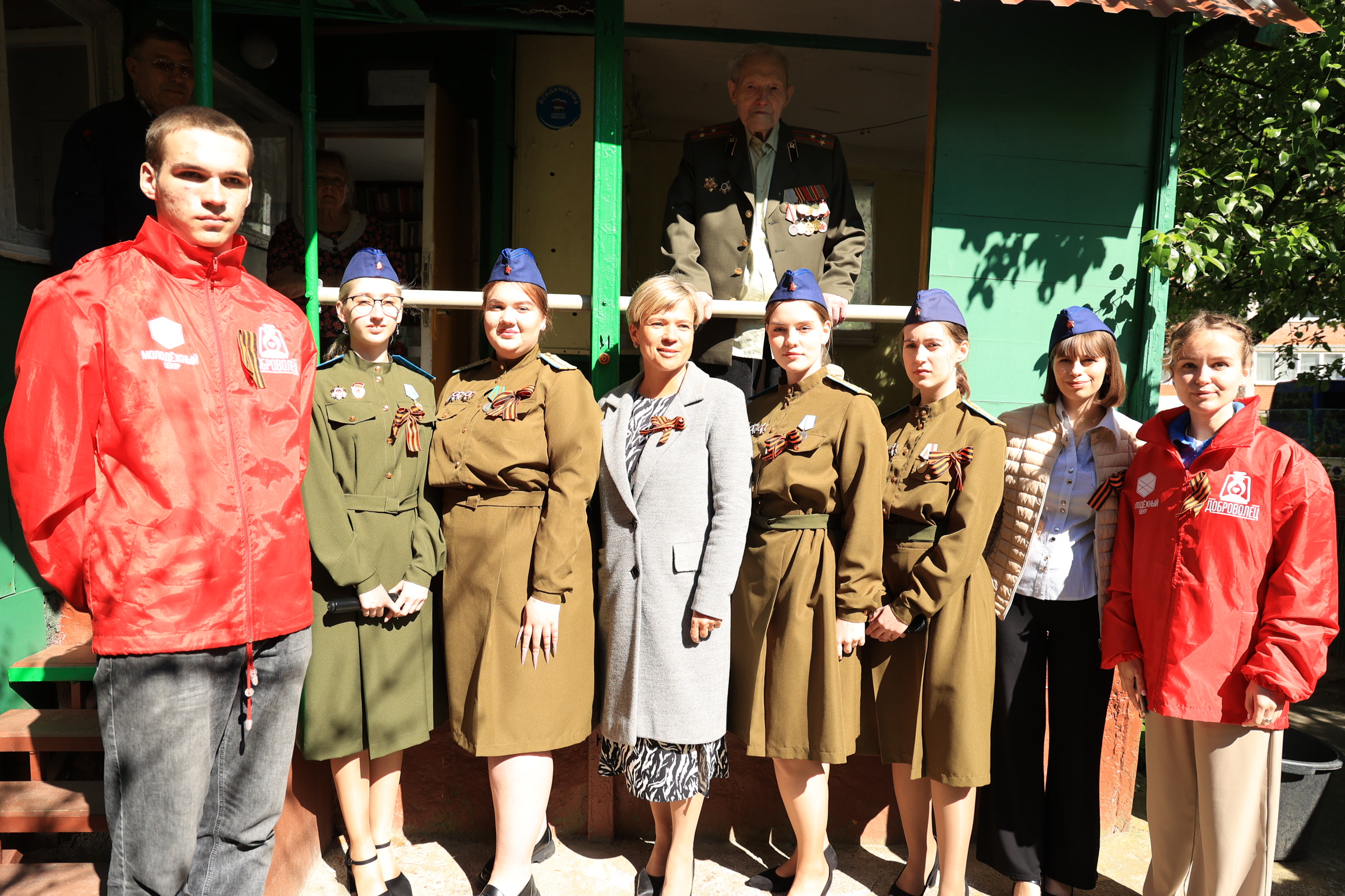 Пели песни и поздравляли ветеранов волонтеры центра «Доброволец» и творческий коллектив МФЮА. Эта душевная акция не оставила равнодушным никого - прохожие присоединились к концерту, соседи подпевали с балконов и поздравляли ветеранов.