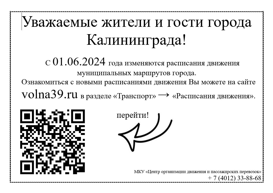 Информирование населения об изменении расписания движения будет осуществляться в салонах автобусов посредствам объявлений с размещенным QR-кодом (ссылкой на новые расписания движения).