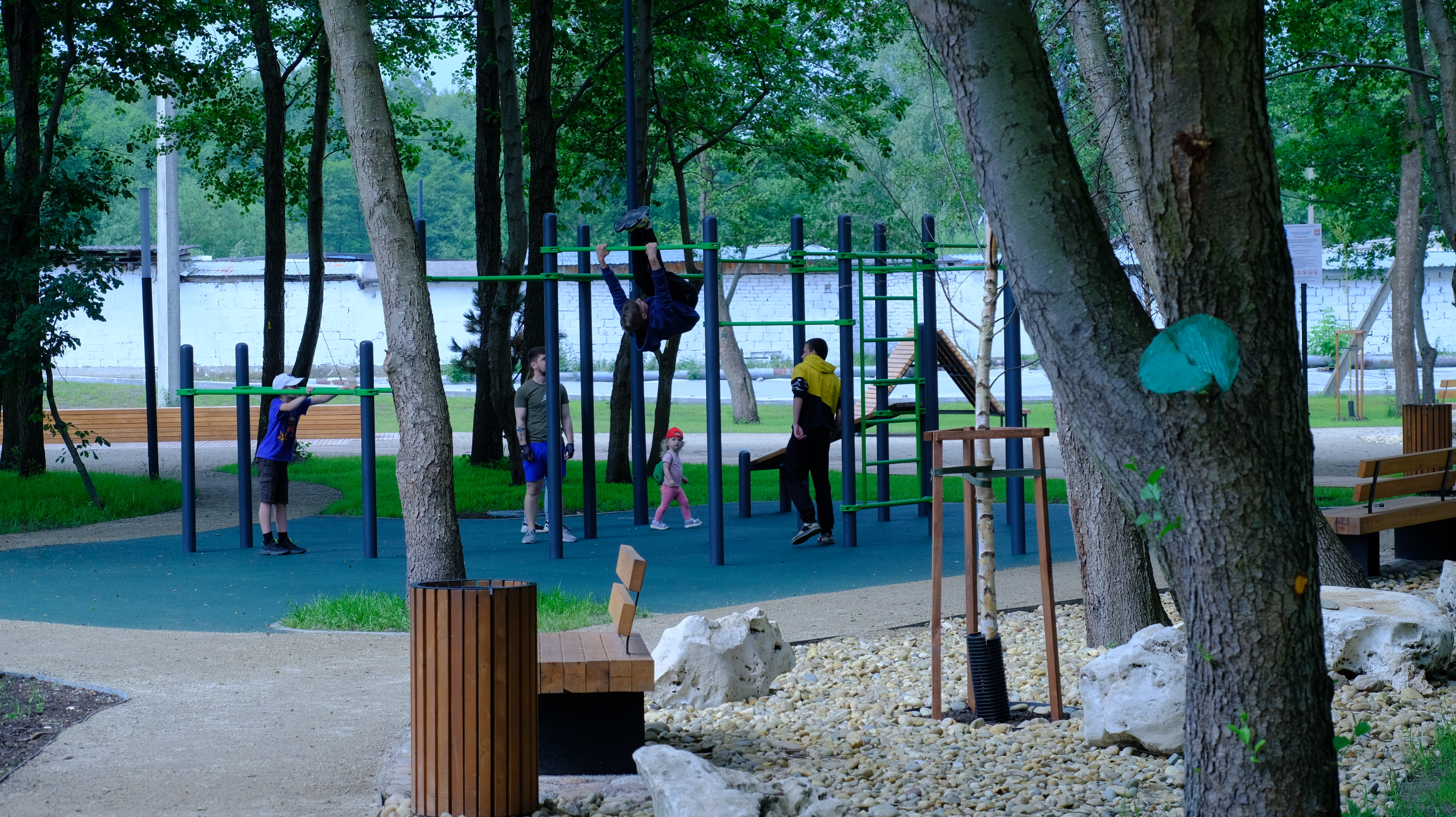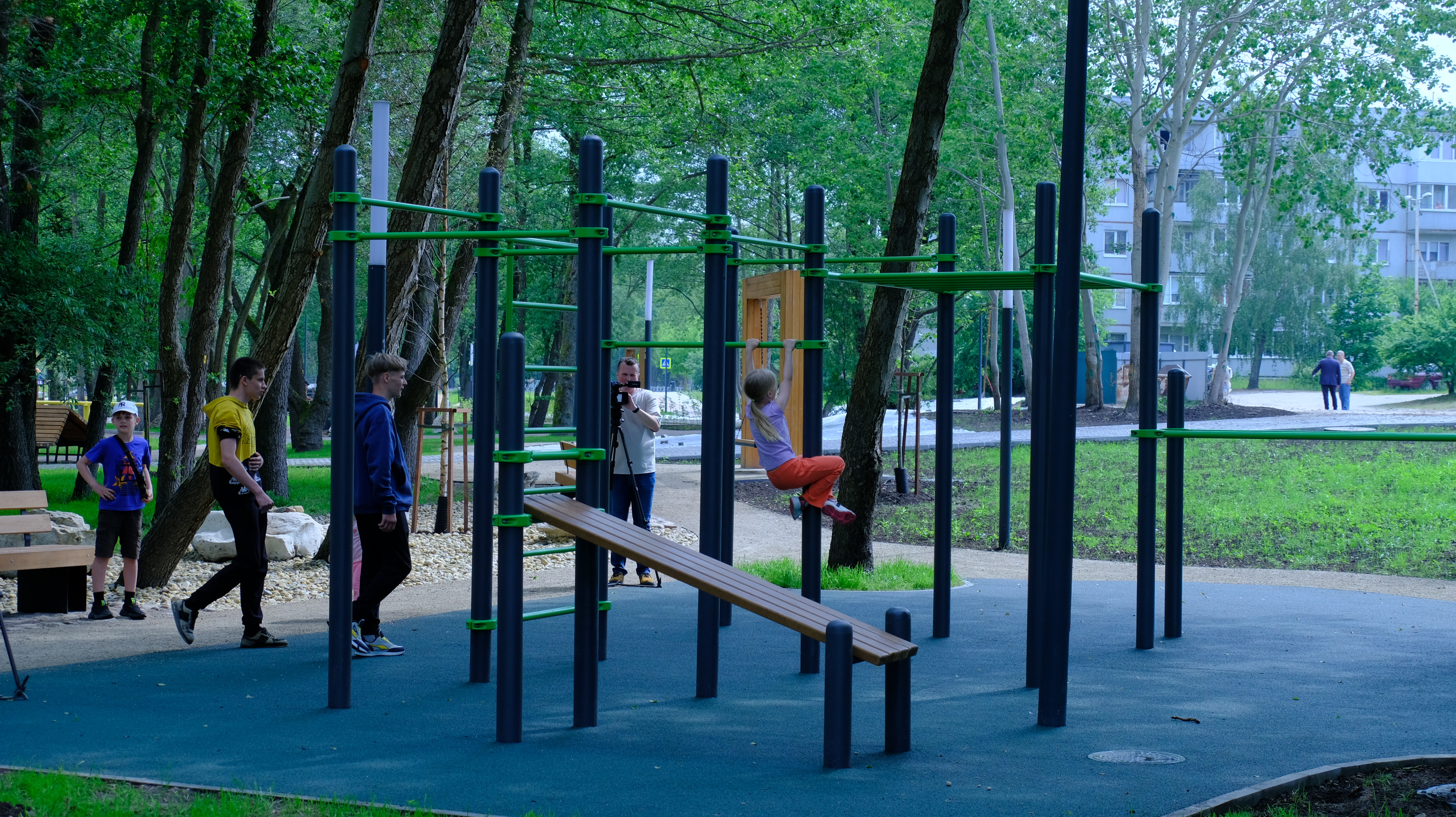 Цена контракта - 117 млн рублей. Местные жители получили прекрасную прогулочную зону с велодорожкой. Так как люди пожелали благоустроить сквер в спортивно-рекреационной направленности, в нём установили как элементы для активных игр детей и занятия спортом, так и множество лавочек, шезлонгов, украсили территорию зелёными насаждениями, применили оригинальные дизайнерские решения.