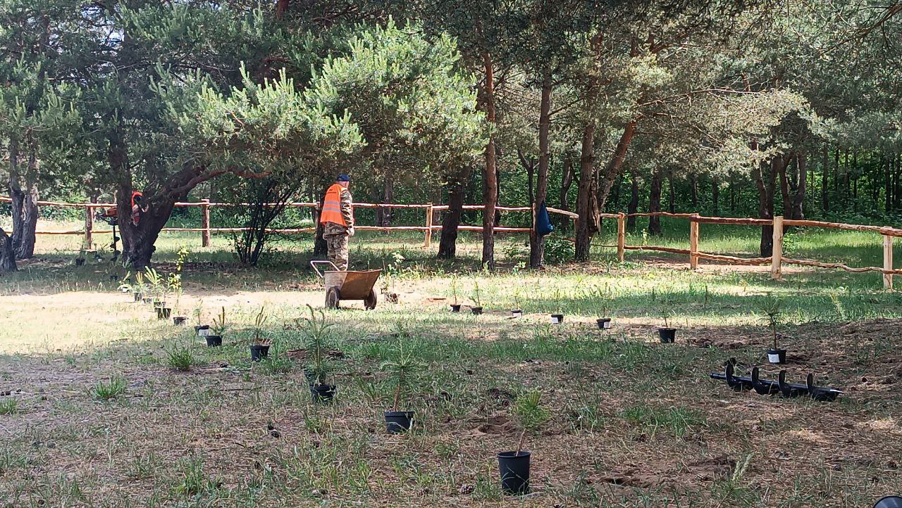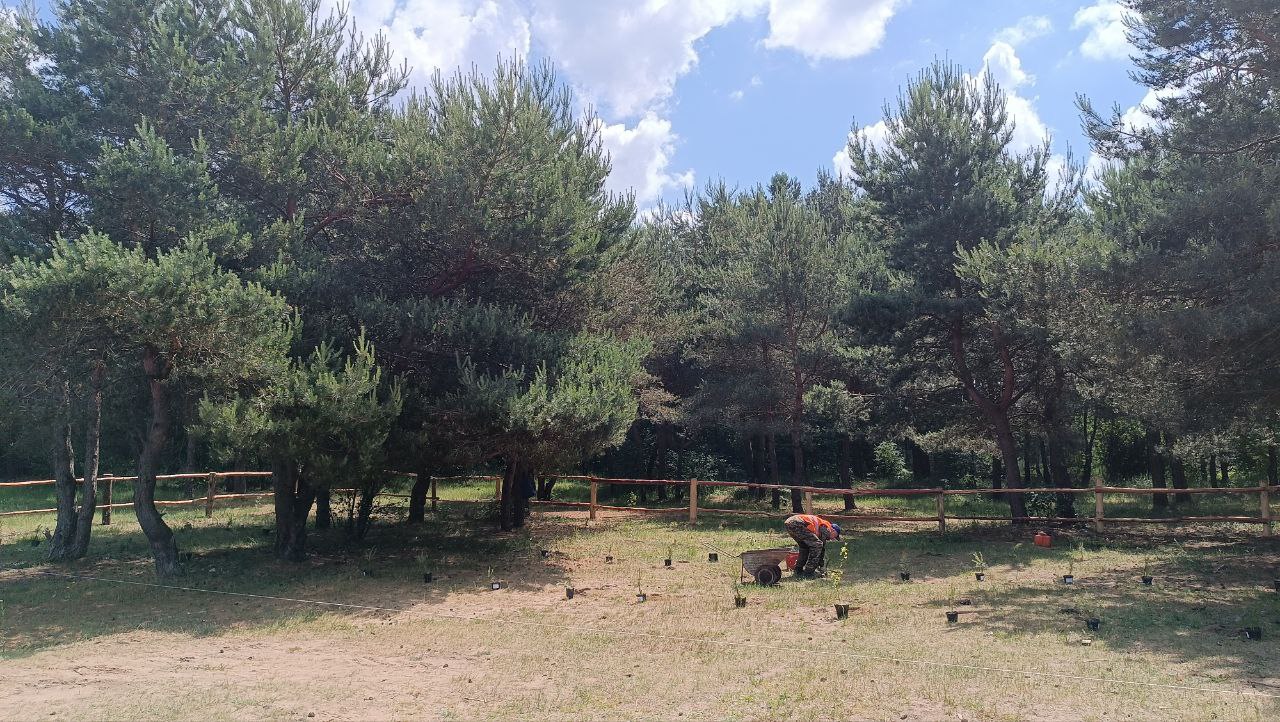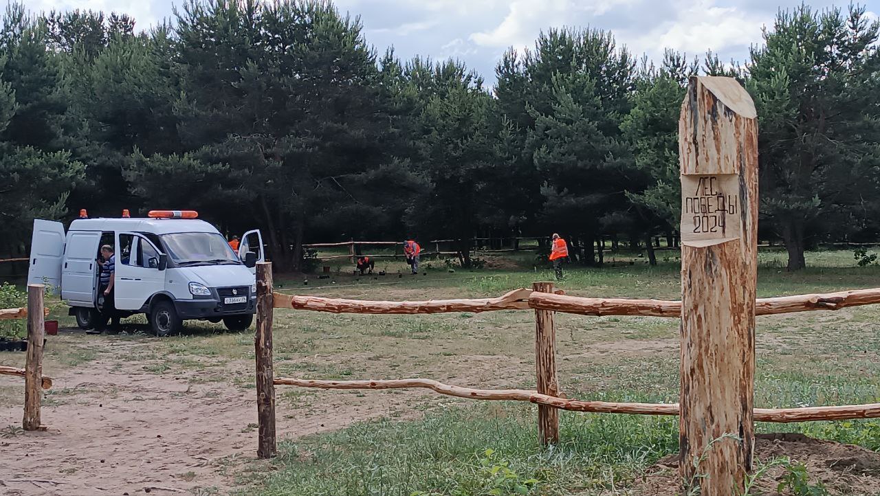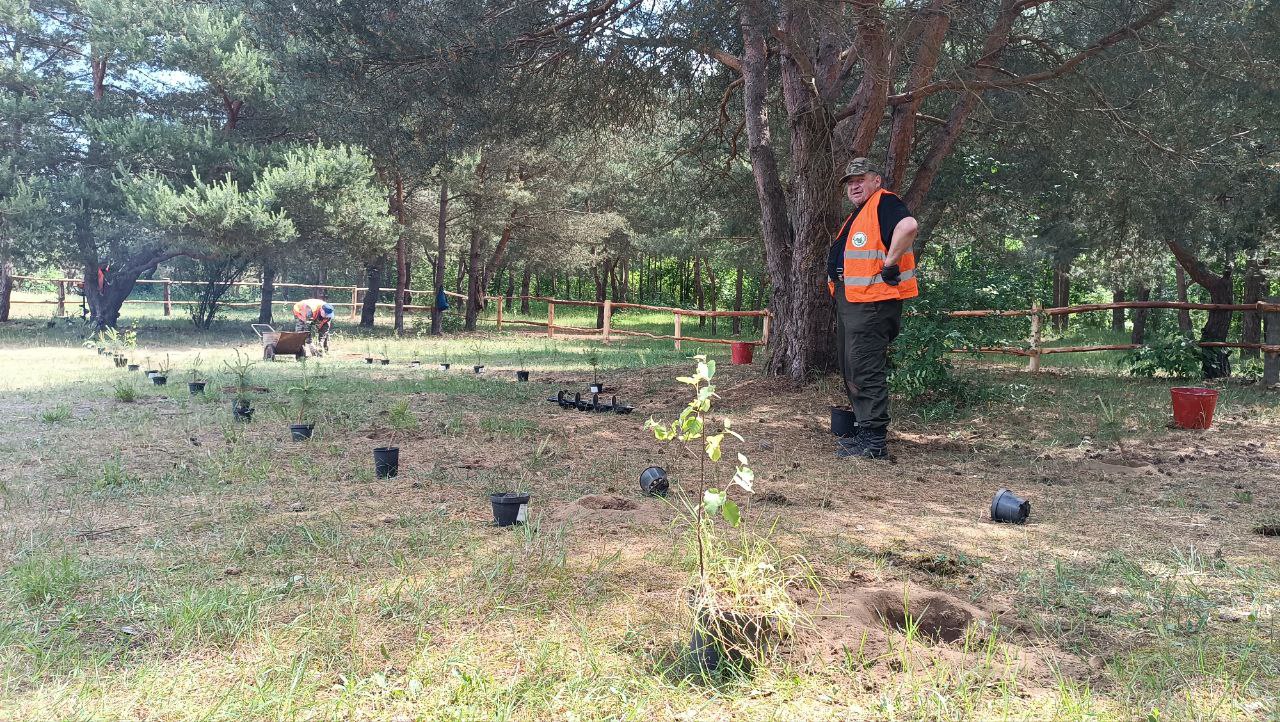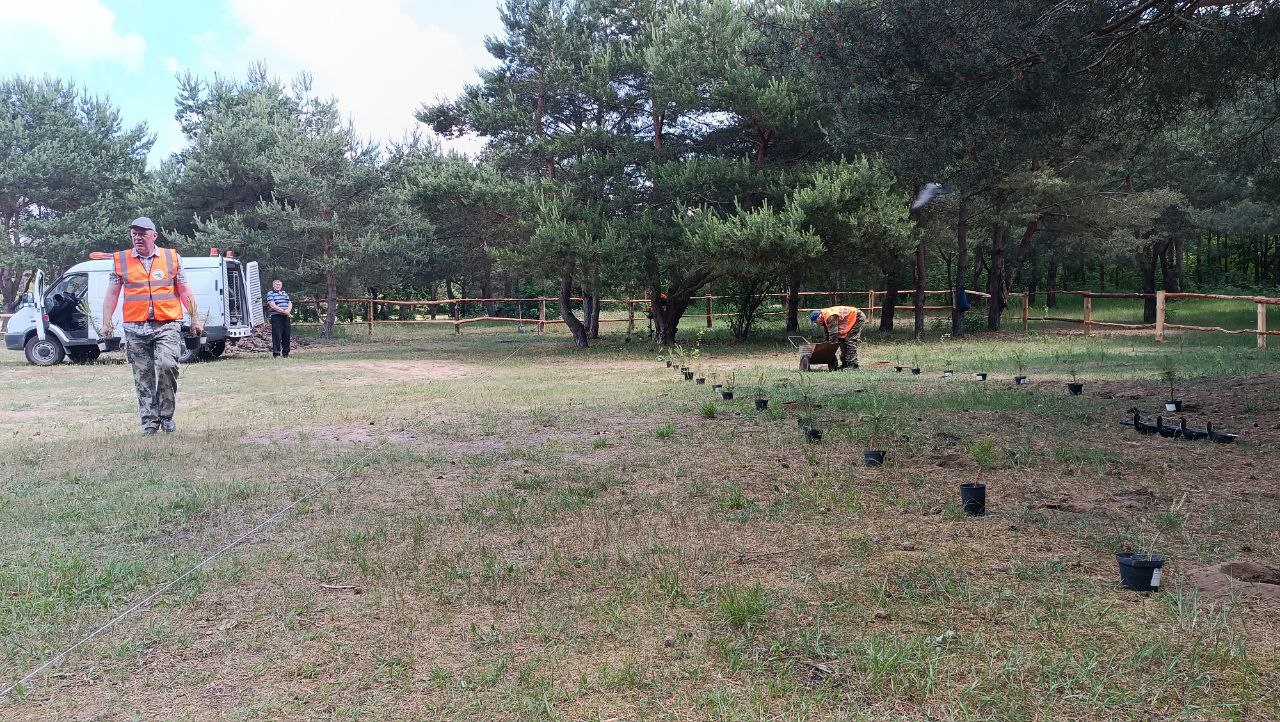 Для надёжности место посадок оградили деревянным забором. Рядом лесники обозначили деревянным частоколом ещё один участок под будущие посадки, там высадят ещё 500 деревьев. Также по округе развесят объявления и плакаты.