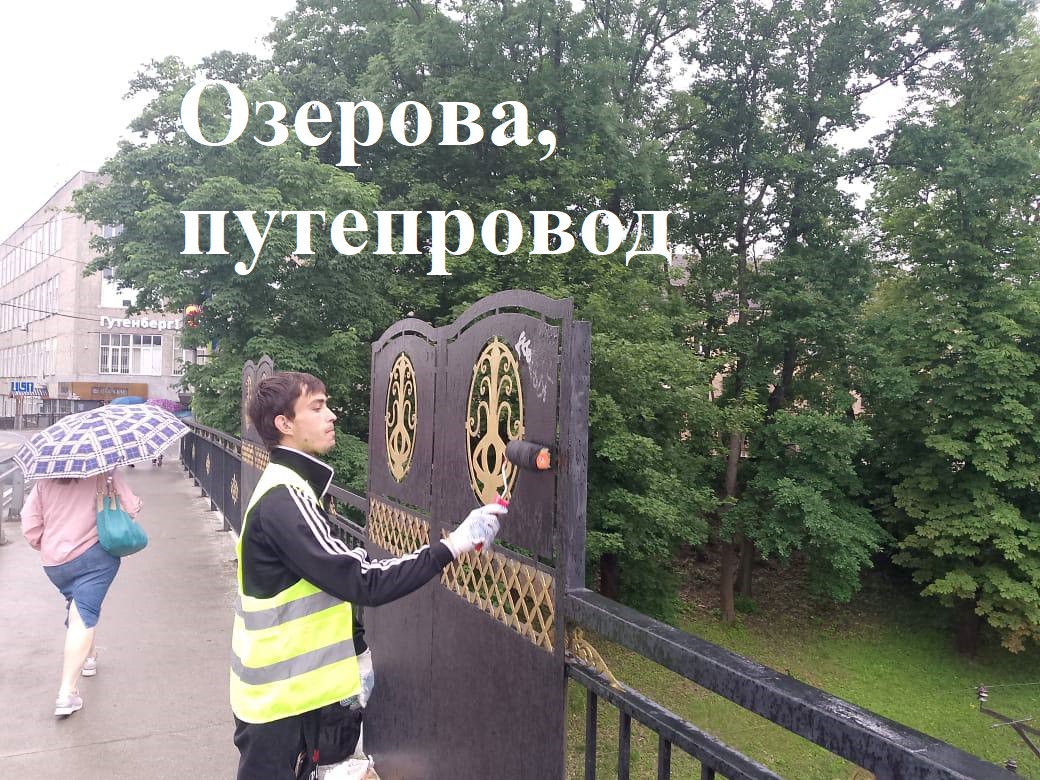 На мостике по ул. Стрелецкой привели в порядок тротуар и подпорную стенку, на мостике по Бассейной установили барьерное ограждение, под 2-й эстакадой привели в порядок систему водоотведения, на путепроводах по Аллее смелых, Ген.-лейт. Озерова, на 2-й эстакаде ликвидировали следы деятельности вандалов, с 21 июня приступают к ремонту лестничных спусков с 1-й эстакады.