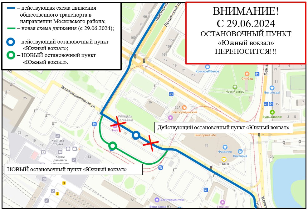В субботу, 29 июня, остановка «Южный вокзал» с ул. Железнодорожной переедет ближе к трамвайным путям у вокзала.