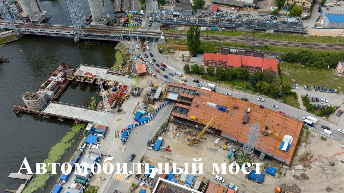 На улицах Железнодорожной, Ген. Буткова и Савенко продолжают работы по переустройству теплосетей, канализации, газопровода, силовых кабелей в зоне строительства автомобильного моста через Преголю. По наб. Марш. Баграмяна в связи с очередным этапом монтажа специальных вспомогательных сооружений и устройств для строительства моста изменили схему движения пешеходов и оградили дорожку блоками.