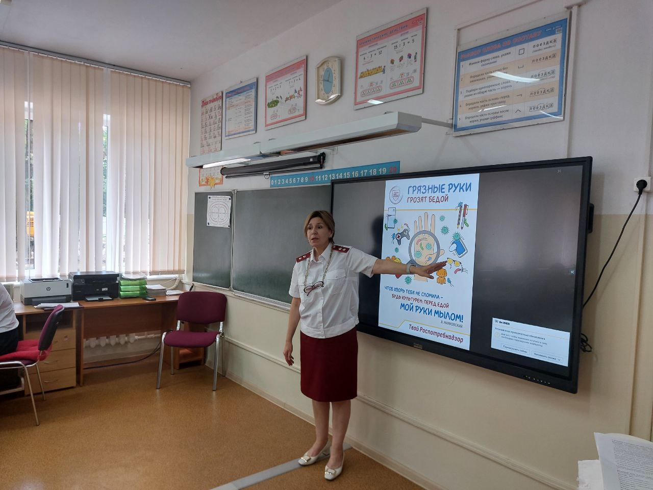 Главный государственный санитарный врач по Калининградской области провела открытый урок для ребят в лагере с дневным пребыванием в школе № 11.