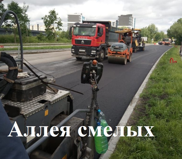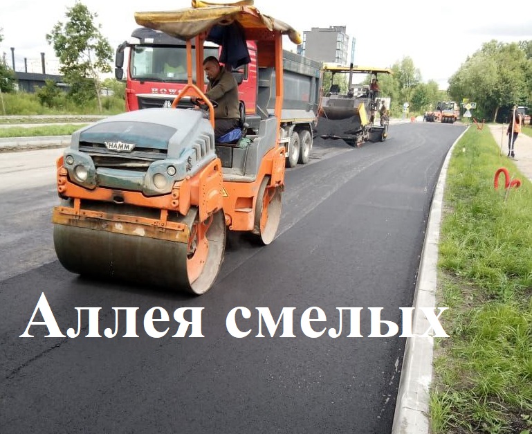 На реконструкции Аллеи Смелых от Карамзина на неделе уложили второй из трёх слоёв асфальтобетона, продолжают мощение тротуаров плиткой.