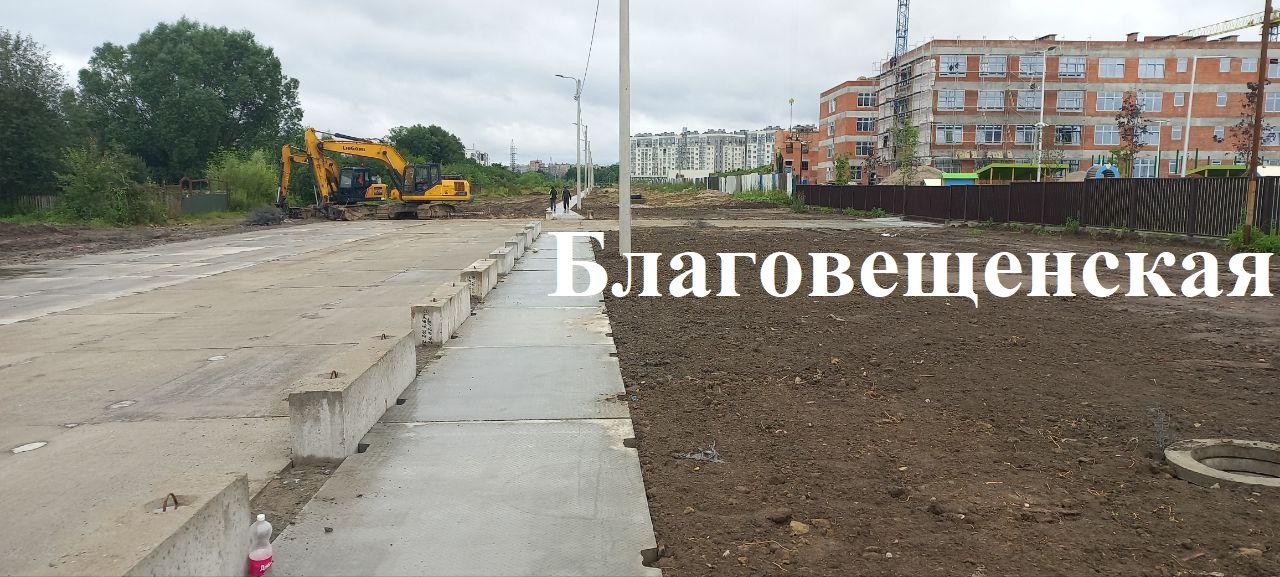 Строительство участка ул. Благовещенской практически завершено: смонтированы все плиты, бетонные блоки, опоры наружного освещения и дорожные знаки, завершены работы на монолитных участках и благоустройство объекта. Уже подключены и горят 17 светильников из 22, завершается подключение последних пяти фонарей.