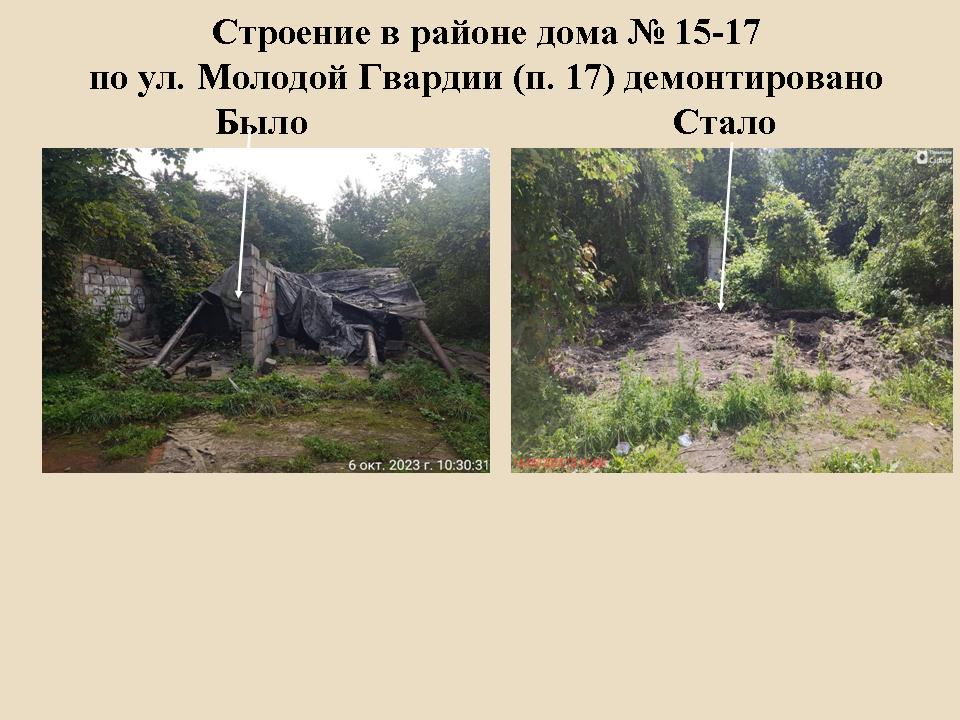 В случае выявления владельцев объектов, комитет делает упор на понуждение владельцев к добровольному демонтажу. С начала года количество демонтированных их владельцами объектов составило 44, общим объемом 128,0 куб.м. Это сэкономило бюджетные средства на сумму около 143,1 тыс. рублей.