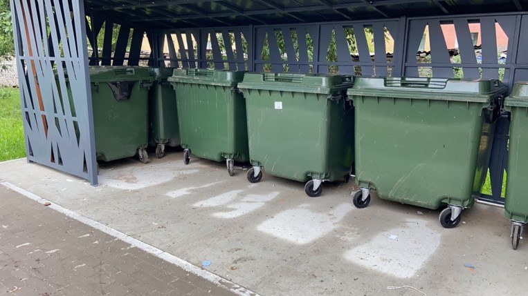 На улице Лейт. Яналова,14 – обустроен тротуар, бетонное основание, ограждение, установлены пластиковые контейнеры объемом 1.1 куб. м., запланированы работы по асфальтированию прилегающего дорожного покрытия и посев газона.
