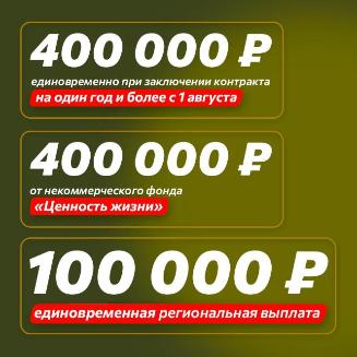 • Единовременная выплата при заключении контракта – от 1 150 000 рублей.