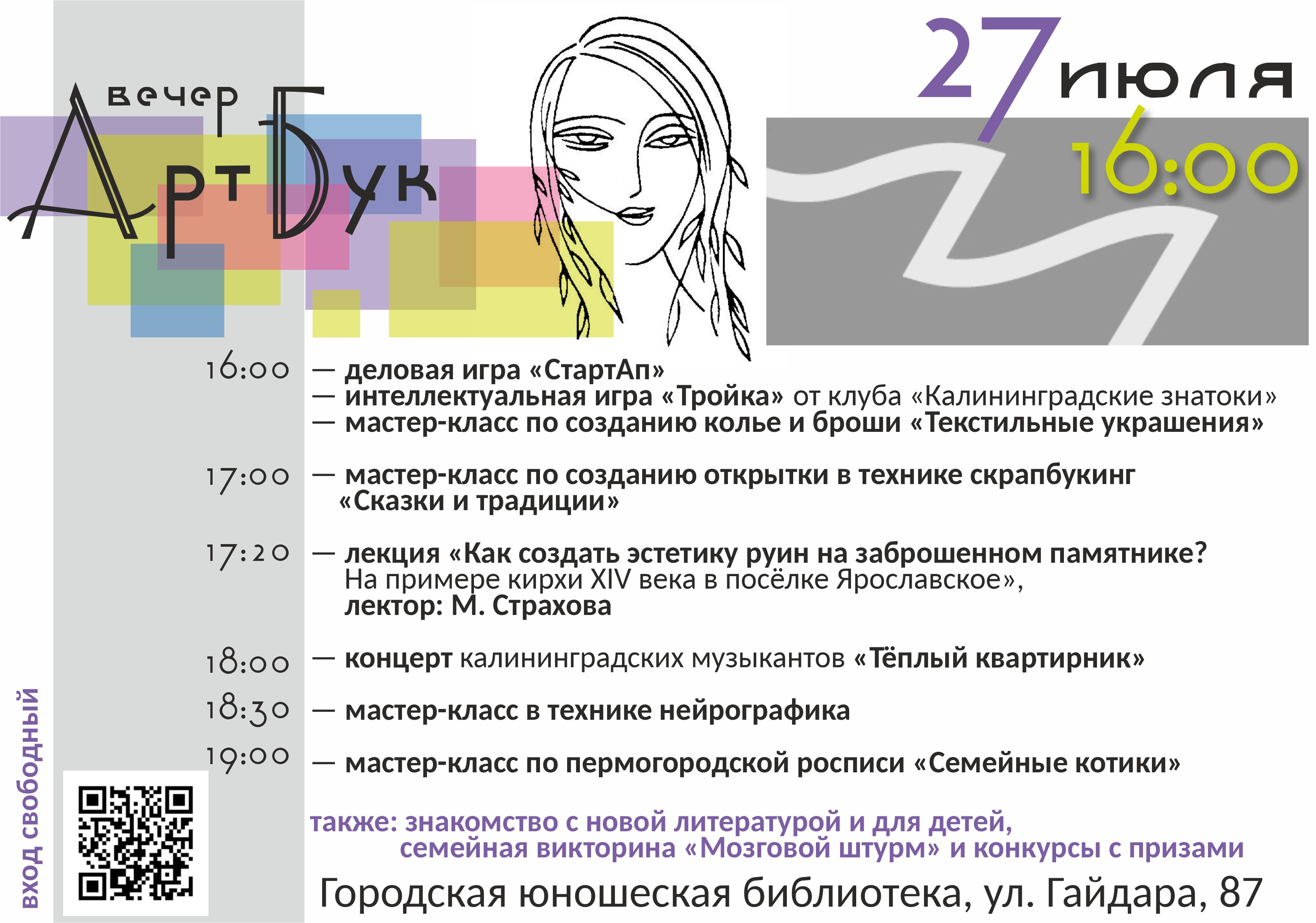 27 июля в Городской юношеской библиотеке в рамках федерального проекта «Большие семейные выходные» пройдёт «Арт-Бук вечер»!