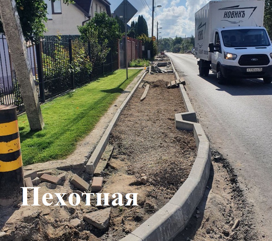 Устройство тротуара по ул. Артиллерийской (от ул. Шахматной до ул. Букетной, четная сторона) - монтаж бортового камня, отсыпка песчаного и щебёночного основания; устройство тротуара по пер. Батальному (от ул. Батальной до дома № 2 по пер. Батальный) – демонтажные работы; ремонт ул. Энгельса - демонтажные работы, регулировка, установка бортового камня, устройство щебёночного основания; ремонт ул. Генерал-лейтенанта Захарова - демонтаж старого покрытия на тротуаре и гранитного бортового камня; устройство тротуара по ул. Батальная (от дома №69 «в» до дома №110) - устройство щебёночного основания, мощение плиткой, установка борта; устройство тротуара по ул. Саратовской от дома № 11 до дома № 39 – регулировка бортового камня, устройство песчаного и щебёночного основания, мощение плиткой.