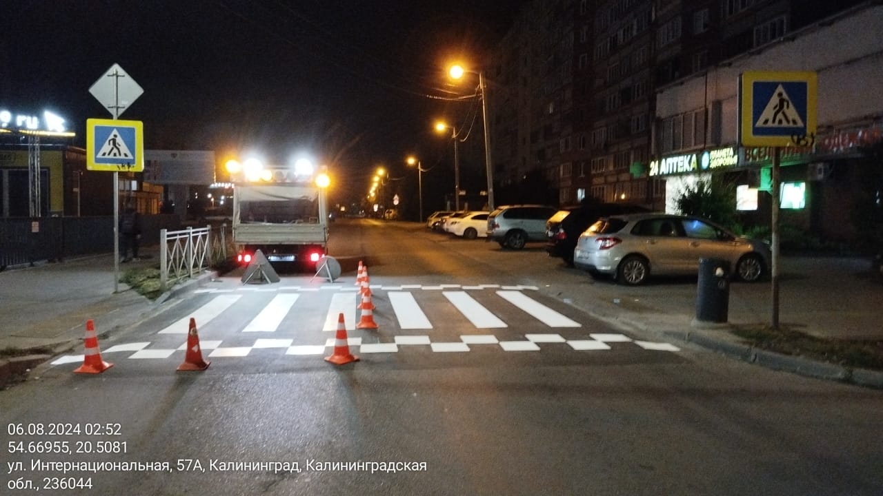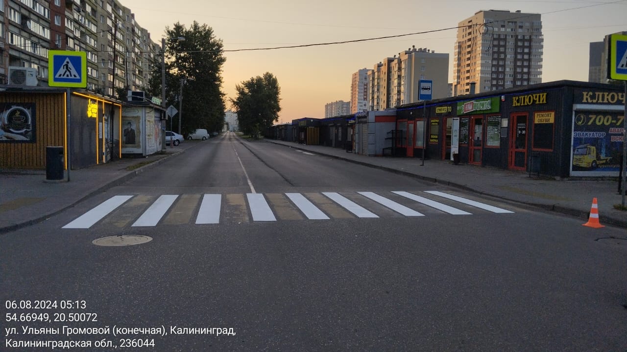 Со 2 по 9 августа в Калининграде по текущему содержанию дорожники выполняли и готовили ремонт на всём протяжении улиц У. Громовой, Малоярославской, Яблочной, на Батальной (у дома №71), Л. Шевцовой (№92), У. Громовой (№99), Ген. Карбышева (№4), Солнечном бульваре (у гимназии №22), Дзержинского (от пр-та Калинина до Аллеи смелых и до ул. Яблочной), Камской (от Киевской до переезда), Подп. Емельянова (у погранинститута), Муромской (и магазина «Спар»), в пер. Заводском (у психиатрической больницы), на перекрёстках Багратиона-Октябрьской и З. Космодемьянской-Майора Козенкова, продолжали ремонт тротуара на пл. Победы, 4 «а».