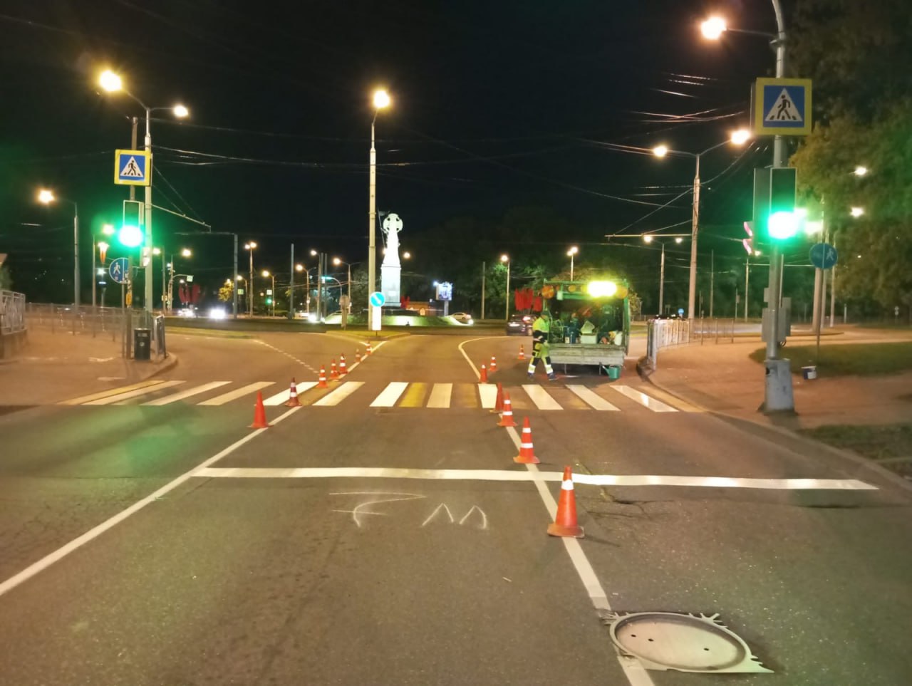 В вечернее, ночное время и в ранние утренние часы продолжается обновление дорожной разметки.