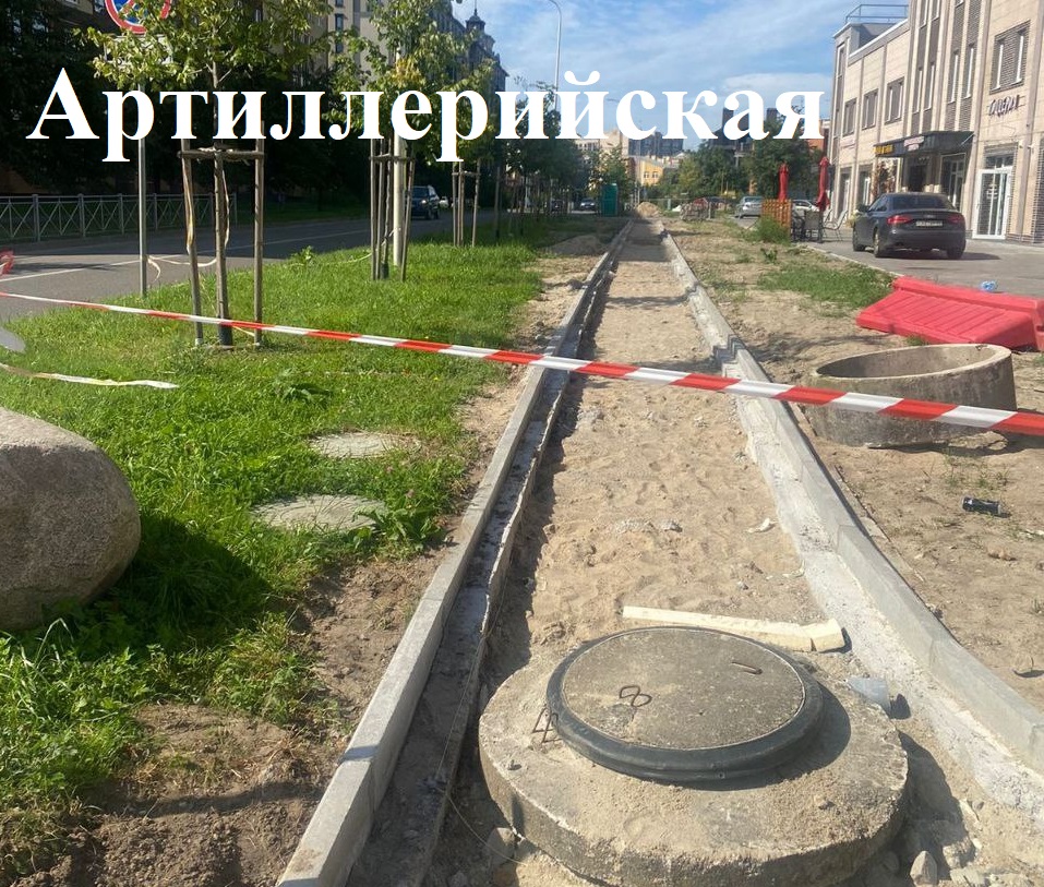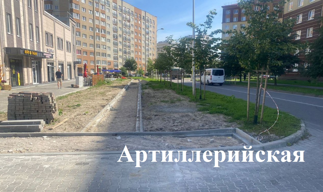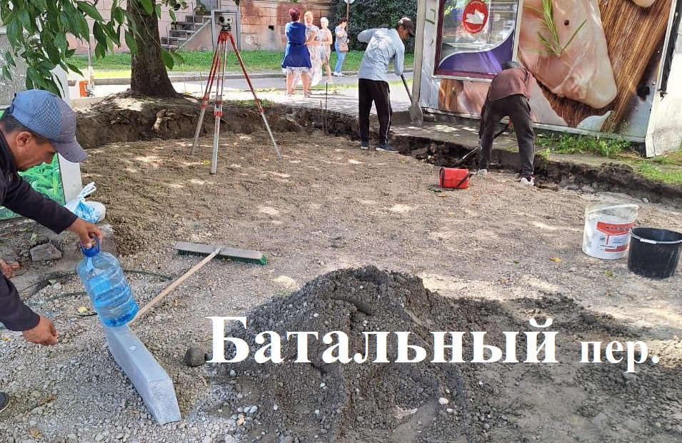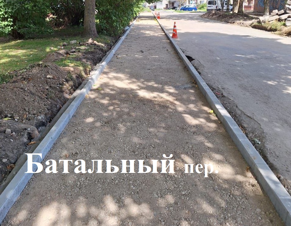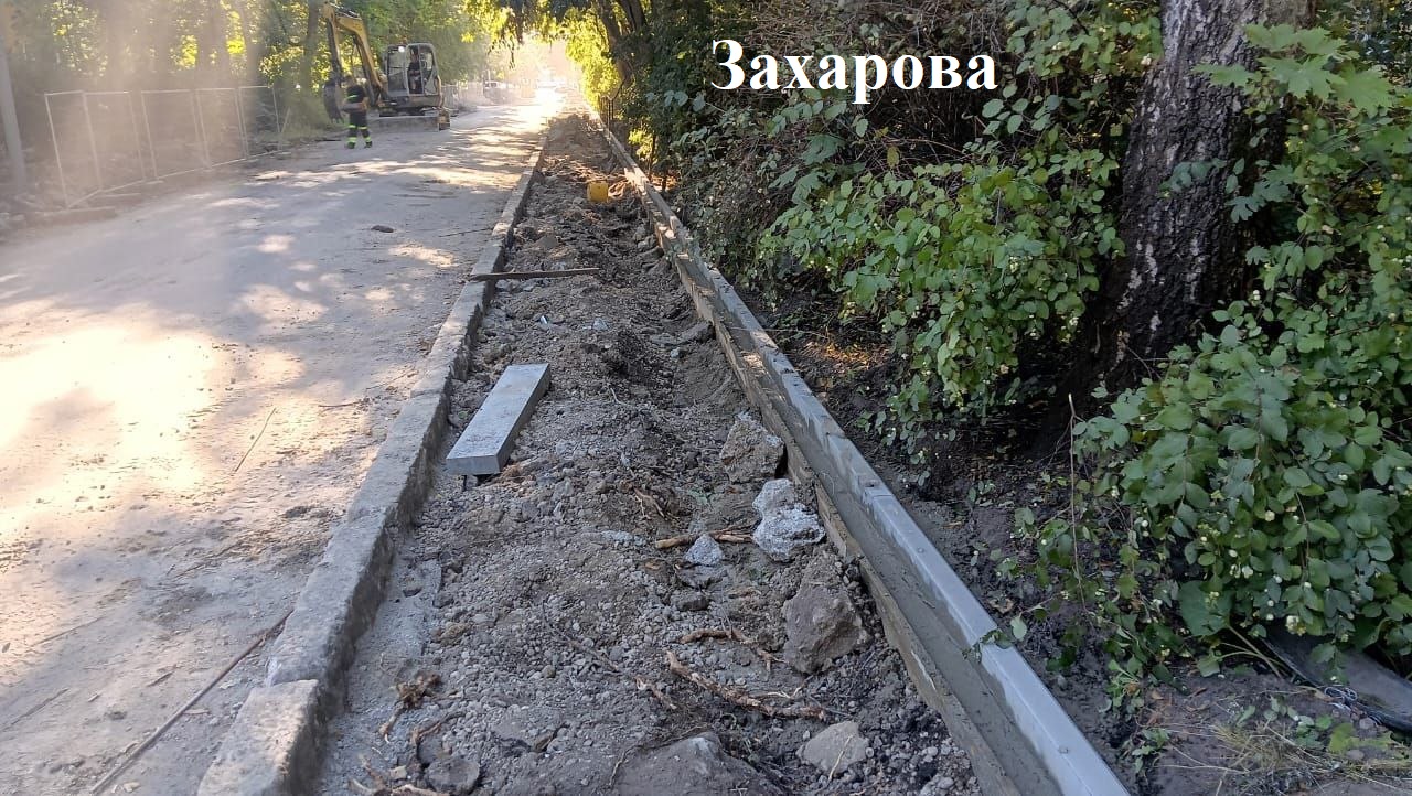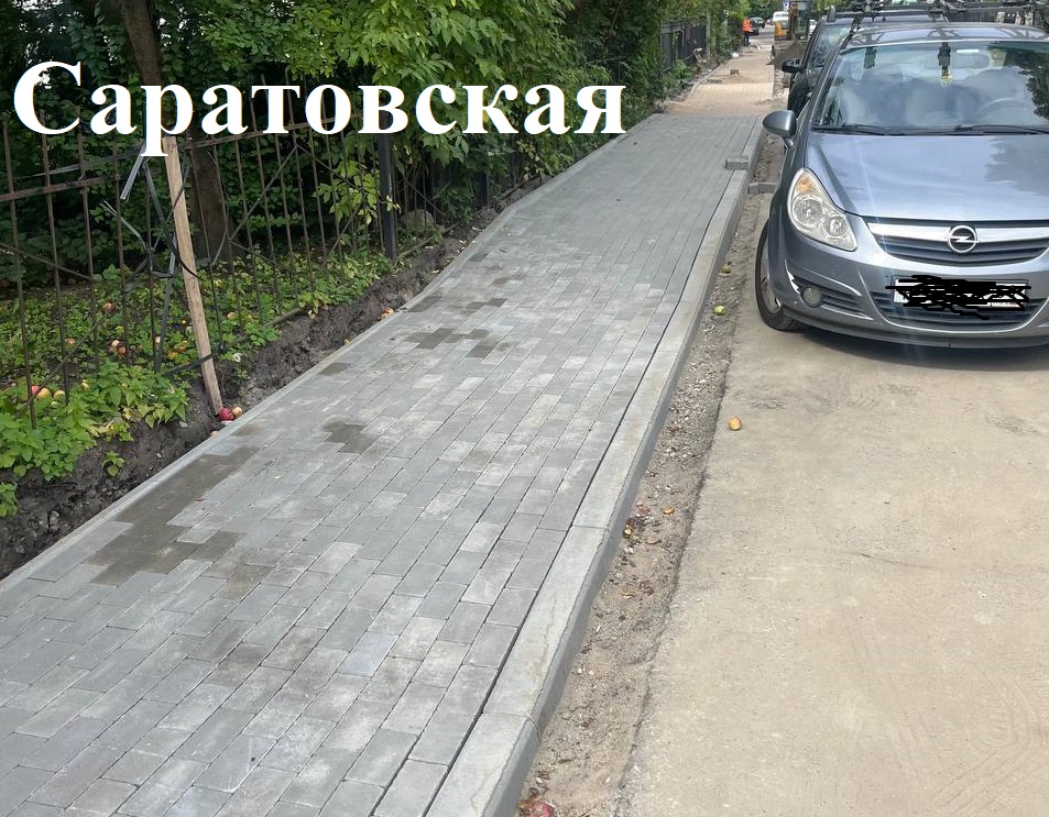 Устройство тротуара по ул. Артиллерийской (от ул. Шахматной до ул. Букетной, четная сторона) - монтаж бортового камня, отсыпка песчаного и щебёночного основания; устройство парковки по ул. Черняховского д. 40-52 (за зданием обл. ГИБДД) – устройство инженерных сетей; устройство тротуара по пер. Батальному (от ул. Батальной до дома № 2 по пер. Батальный) – демонтаж и установка борта, устройство песчаного и щебёночного основания; ул. Генерал-лейтенанта Захарова - демонтаж старого асфальта на тротуаре, регулировка бортового камня; устройство тротуара по ул. Батальная (от дома №69 «в» до дома №110) - устройство щебёночного основания, мощение плиткой, установка борта; устройство тротуара по ул. Саратовской от дома № 11 до дома № 39 – регулировка бортового камня, устройство песчаного и щебёночного основания, мощение плиткой, на тротуаре по ул. Добролюбова – устройство основания из песка и щебня.