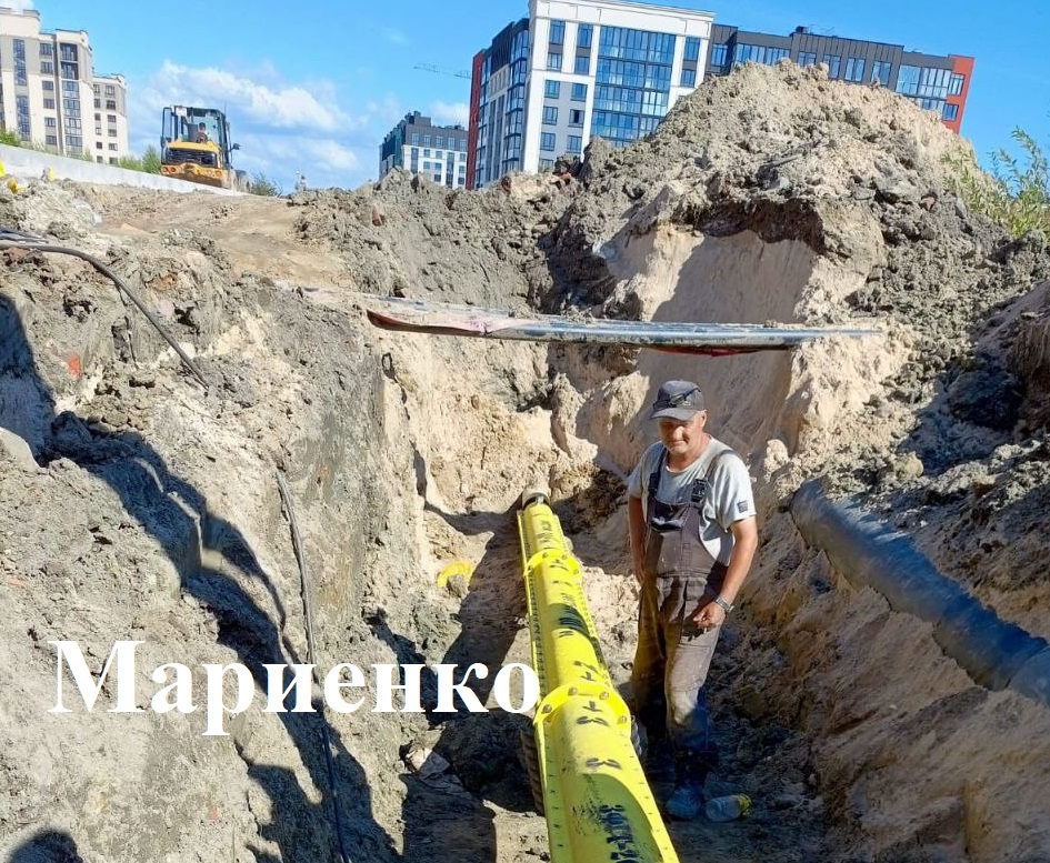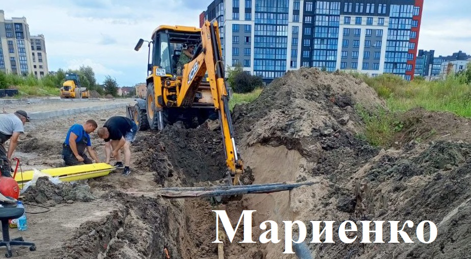 На строительстве улицы Мариенко ведут укладку газопровода в гильзы на втором переходе дороги, устанавливают поребрик на тротуаре.