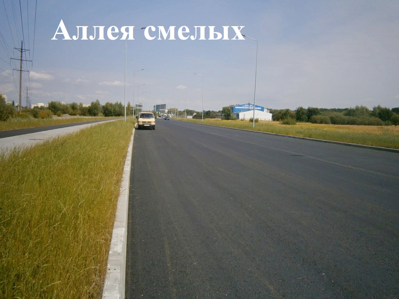На Аллее Смелых завершили укладку верхнего слоя асфальта от Южного обхода до перекрёстка с ул. Н. Карамзина, на объекте ведут благоустройство. Предстоит установить дорожные знаки, остановочные павильоны, нанести разметку.