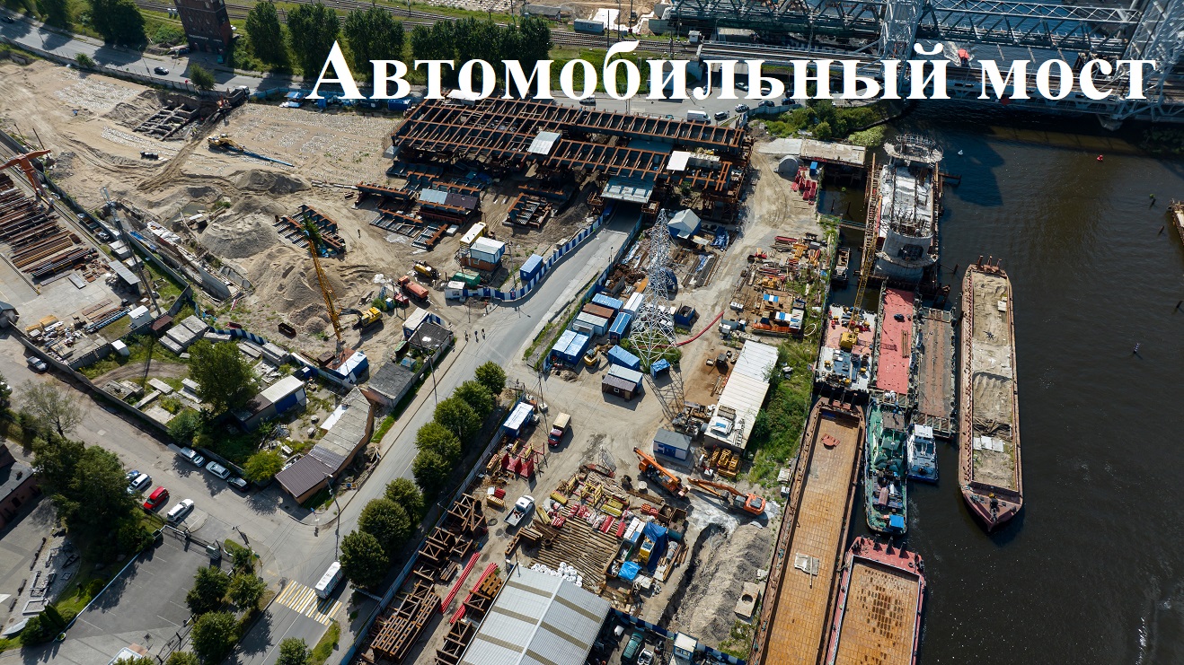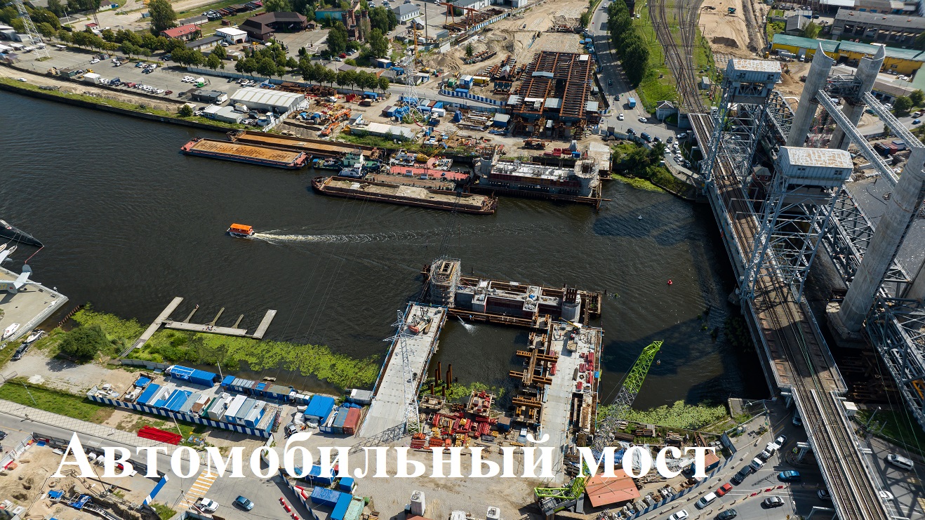 Строительство автомобильного моста через Преголю. Здесь по графику идёт переустройство сети газоснабжения в районе улиц Ген. Буткова и Савенко, а также на Железнодорожной, где также переустраивают напорную канализацию от КНС-8. На самом мосту – сооружение опор, армирование, установка опалубок, бетонирование, сборка ортотропных плит и металлоконструкций пролётов.