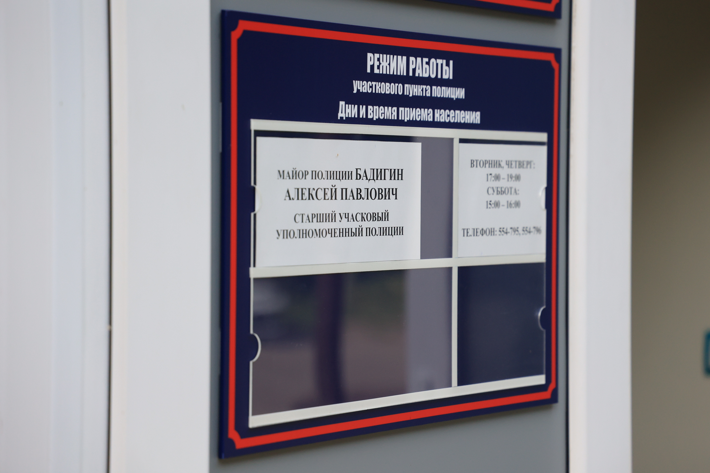Приём населения в новом участковом пункте ведёт майор полиции Алексей Бадигин. Пока график составлен таким образом, что обращаться к нему жители могут по вторникам и четвергам с 17 до 19 часов, в субботу с 15 до 16 часов. Телефон: 554-795, 554-796.
