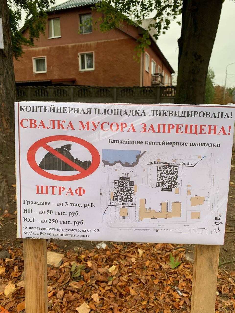 Комитет городского хозяйства и строительства администрации Калининграда сообщает о ликвидации контейнерной площадки на Каштановой аллее, на перекрестке с улицами Чапаева и Огарева.