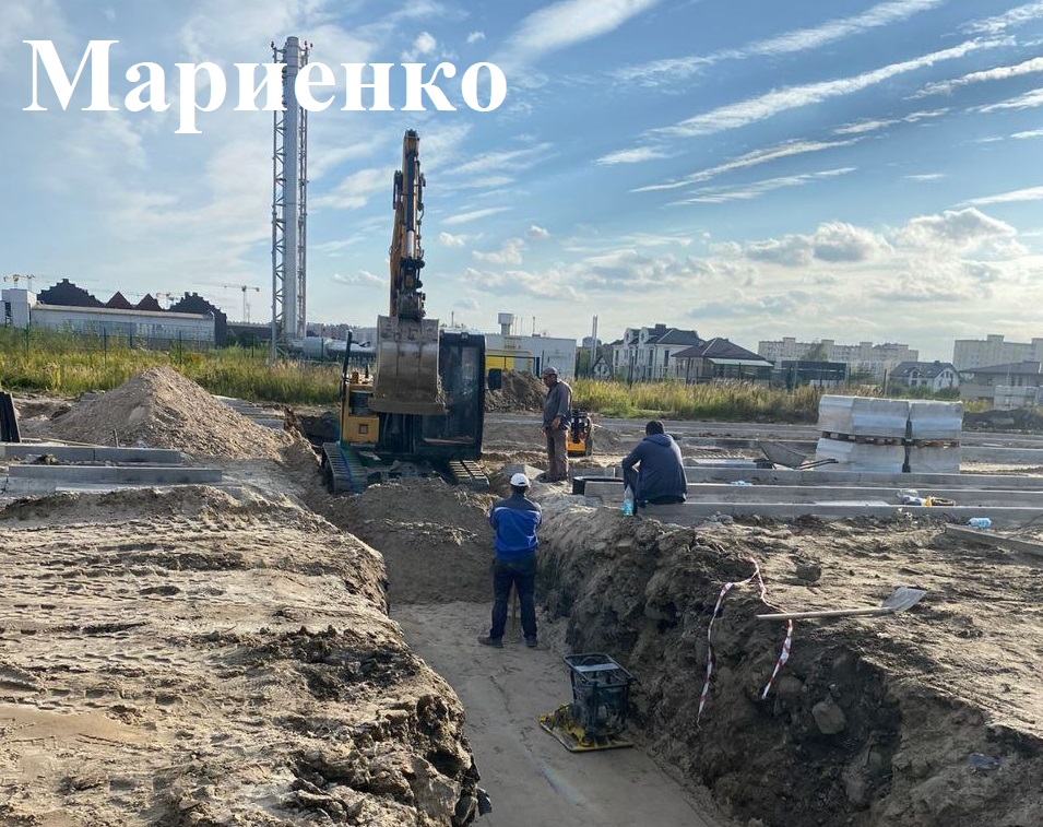 Строительство ул. Мариенко: продолжаются работы по устройству тротуаров, велодорожек и подготовка под укладку асфальта на дороге. Смонтированы гильзы под полотном дороги для прокладки инженерных коммуникаций к проектируемой школе.
