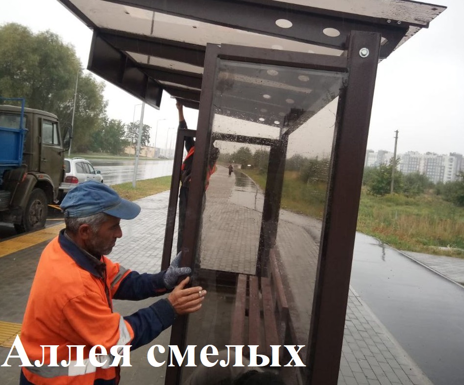 На Аллее Смелых от ул. Карамзина до Южного обхода на этой неделе смонтировали остановочные павильоны, готовятся к нанесению трафаретов по тротуарам и велодорожке.