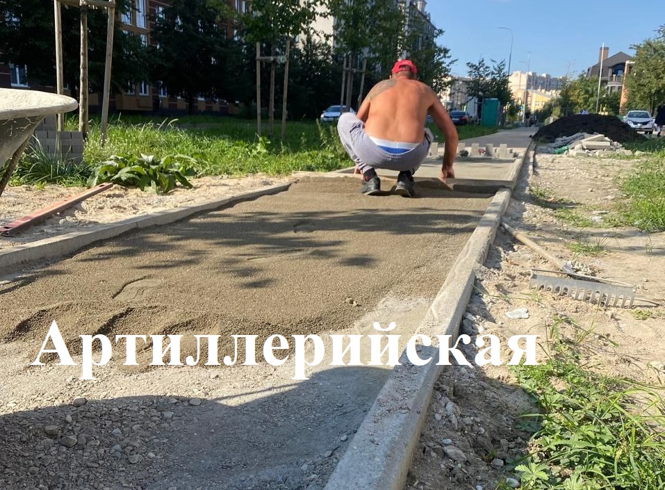 Тротуар по ул. Артиллерийской – продолжение мощения и подготовка к благоустройству; парковка по ул. Черняховского – устройство инженерных сетей, устройство песчаного основания, установка бортового камня; тротуар по пер. Батальному – мощение плиткой, ул. Генерал-лейтенанта Захарова - демонтаж старого асфальта на тротуаре, регулировка бортового камня; ремонт ул. Энгельса – мощение плиткой, установка борта; тротуар по ул. Саратовской – мощение плиткой; ремонт ул. Стрелковой – мощение плиткой тротуара; на Закавказской – разработка грунта, регулировка и установка борта; устройство тротуара и проезда к многоквартирным домам по ул. Марш. Борзова, 7-11, 13-17, 19-25 – разработка грунта, устройство песчаного основания; устройство тротуара по ул. Художественной - разработка грунта, устройство песчаного основания.