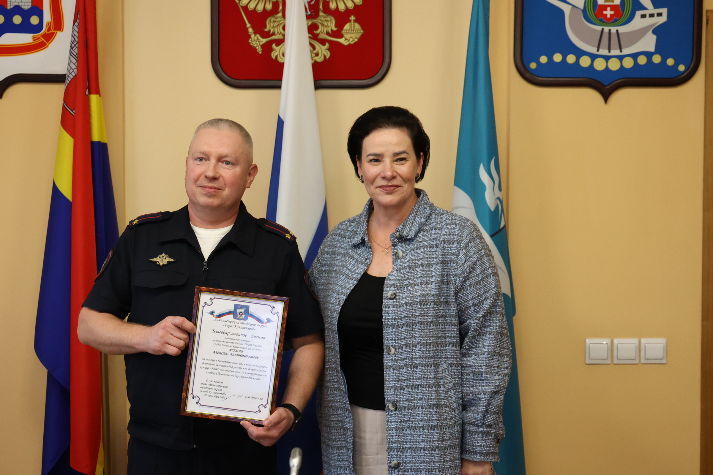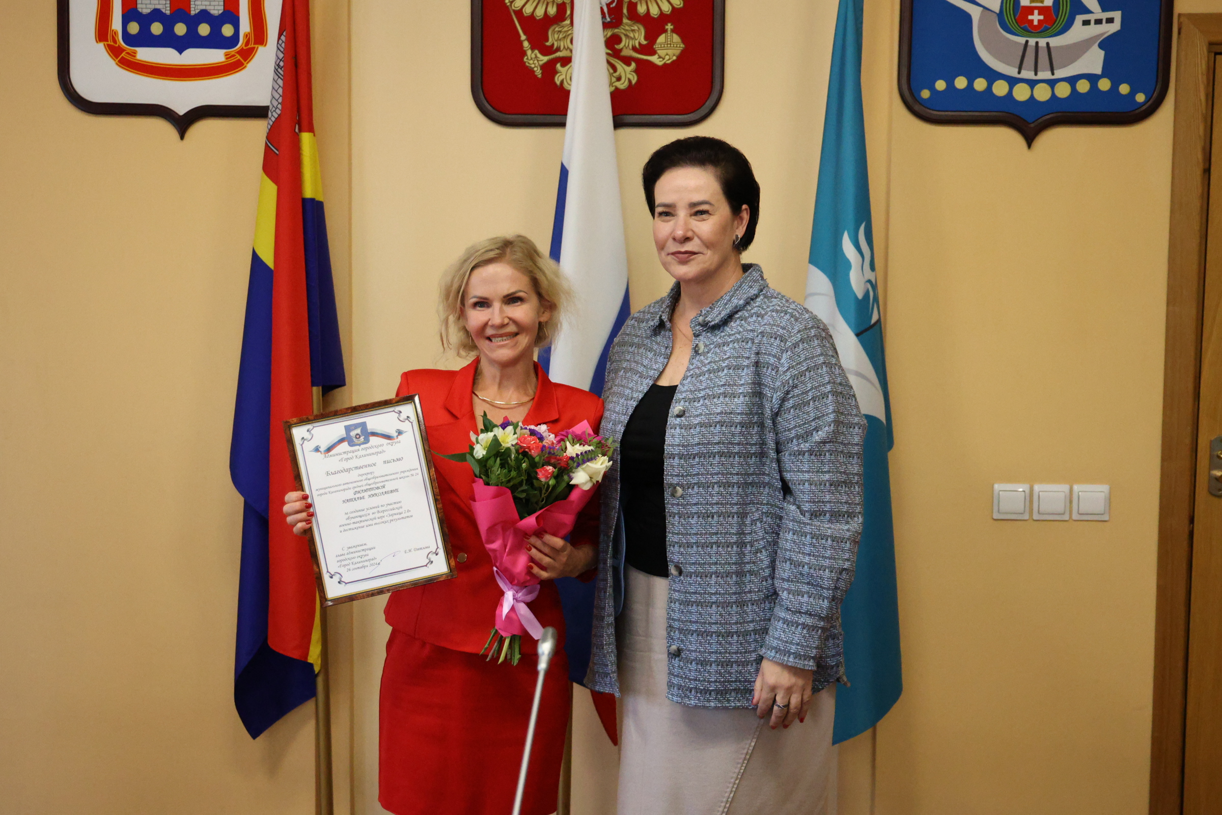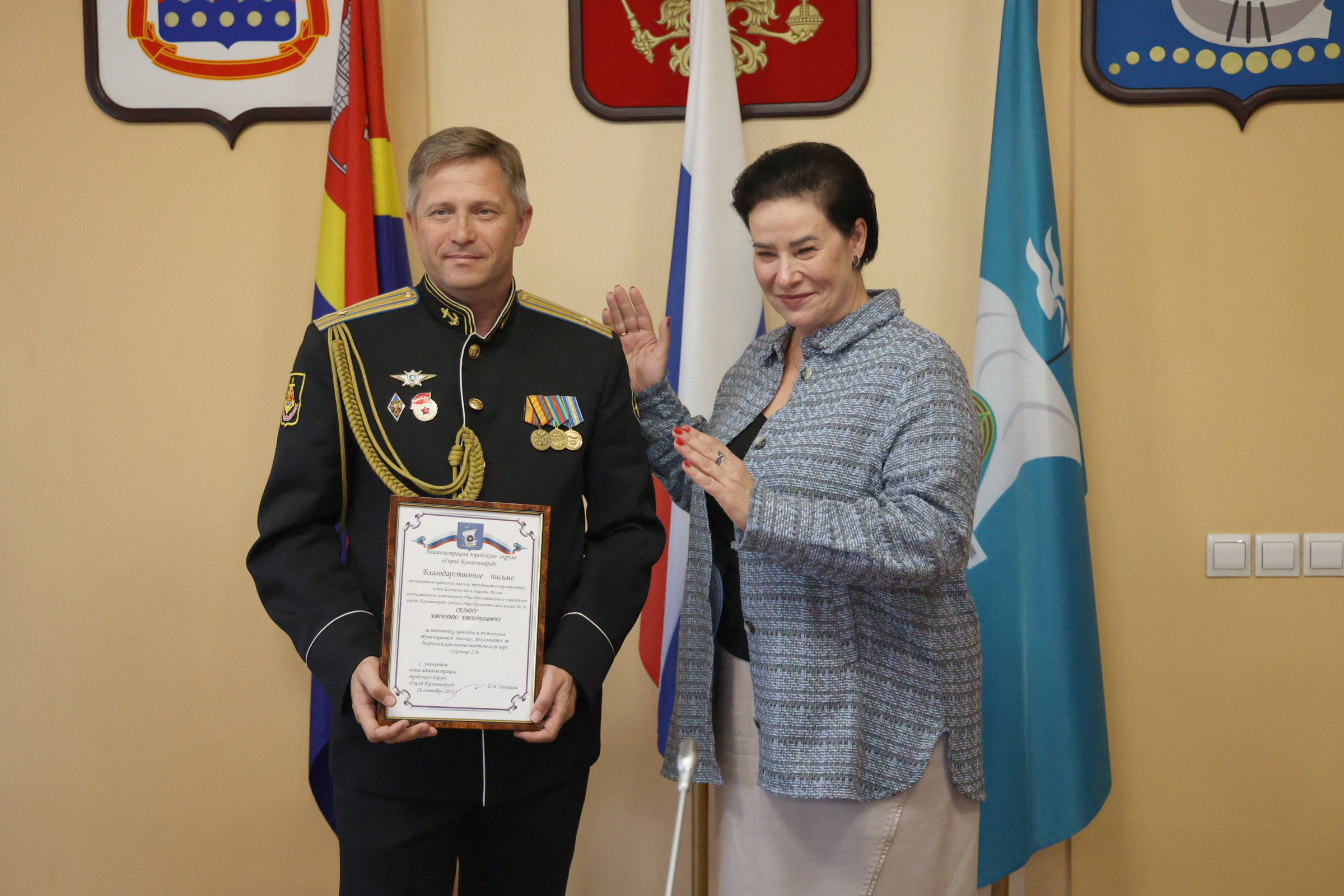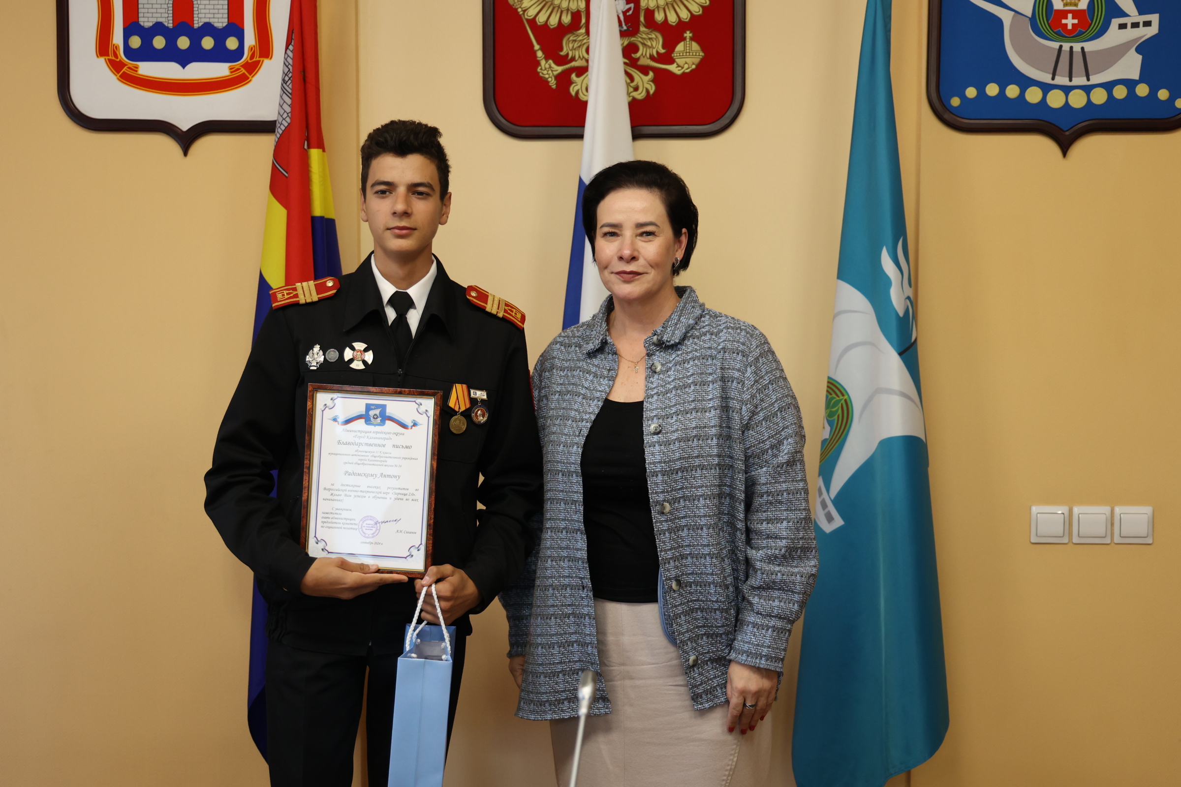 Сегодня в администрации Калининграда чествовали участников Всероссийской военно-патриотической игры «Зарница 2.0» и «Безопасное колесо 2024». Поздравила ребят и их наставников глава областного центра Елена Дятлова.