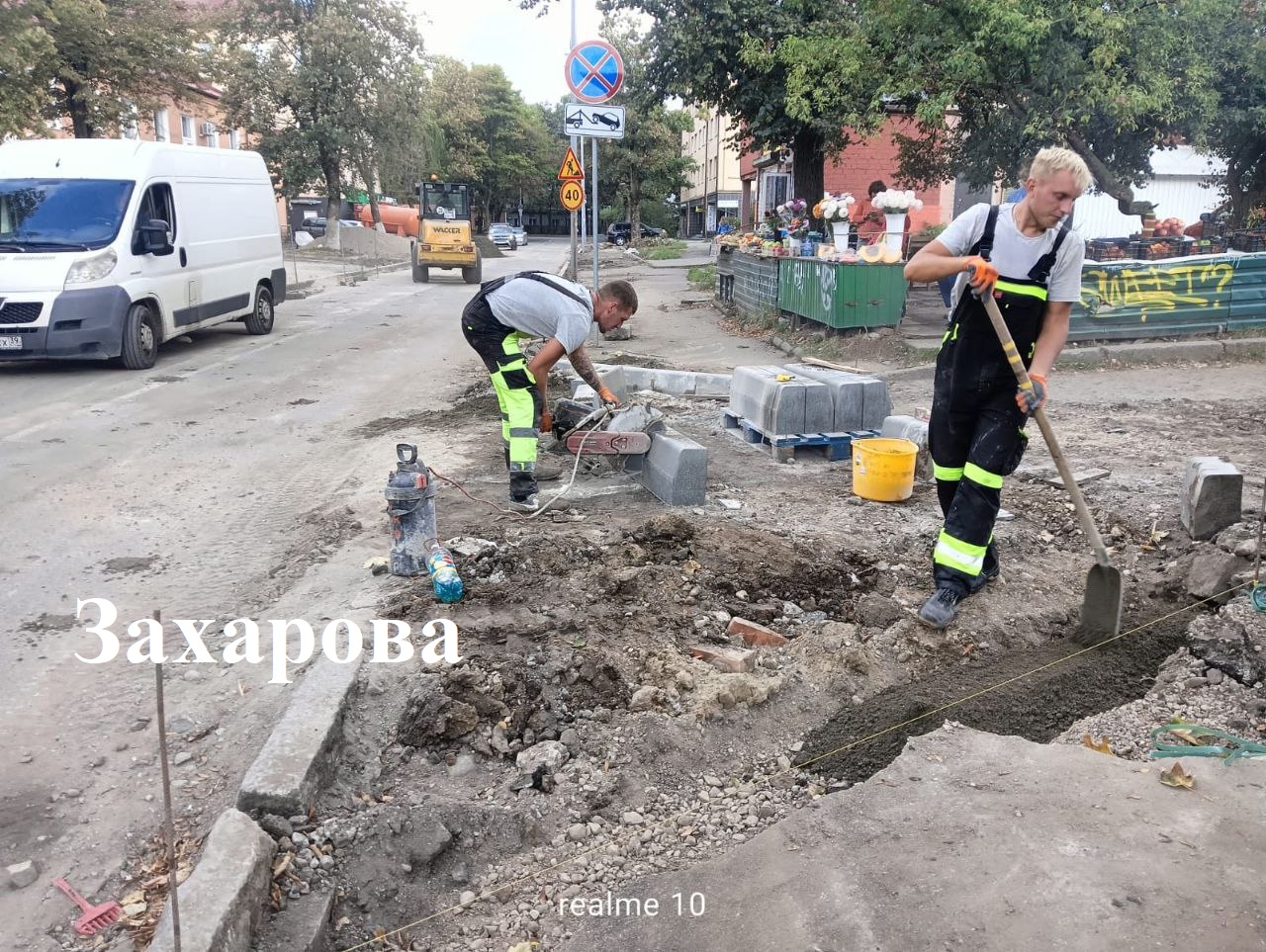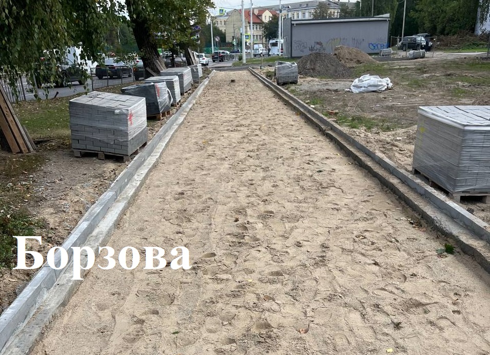 Тротуар по ул. Артиллерийской – продолжение мощения; парковка по ул. Черняховского – устройство инженерных сетей, устройство песчаного основания, установка бортового камня; тротуар по пер. Батальному – мощение плиткой, ул. Генерал-лейтенанта Захарова - демонтаж старого асфальта на тротуаре, регулировка бортового камня; ремонт ул. Энгельса – мощение плиткой, установка борта; тротуар по ул. Саратовской – мощение плиткой, заделка штроб; ремонт ул. Стрелковой – мощение плиткой тротуара; на Закавказской – разработка грунта, регулировка и установка борта; устройство тротуара и проезда к многоквартирным домам по ул. Марш. Борзова, 7-11, 13-17, 19-25 – разработка грунта, устройство песчаного основания; устройство тротуара по ул. Художественной – разработка грунта; Чкалова – разработка грунта, регулировка борта.