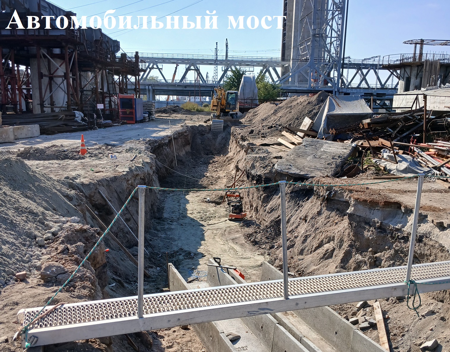 На строительстве автомобильного моста через Преголю продолжаются работы на инженерных сетях: на ул. Железнодорожной идёт переустройство напорной канализации от КНС-8; проведены гидравлические испытания трубопровода от КНС-8; идёт переустройство высоковольтной линии по ул. Портовой, подготовка траншеи, основания и установка лотков; устройство котлована под газопровод на ул. Железнодорожной. Мостовики продолжают работы по армированию, бетонированию, сборке конструкций и на самом «теле» моста по обоим берегам.
