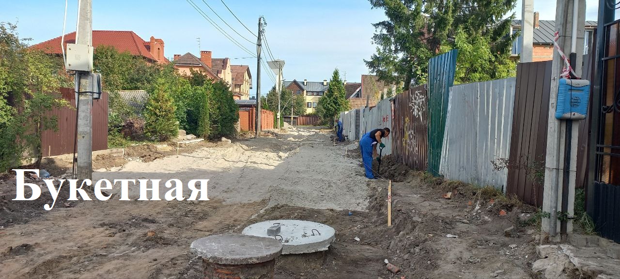 На строительстве ул. Мариенко уложили нижний слой асфальтобетона, завезли материалы на строительство временной дороги по ул. Благовещенской, на Букетной ведут устройство основания, устройство сети ливневой канализации и монтаж колодцев, идёт прокладка сетей, в том числе освещения, дождевой канализации и «Безопасного города», на Сурикова завезли трубы для прокладки силового кабеля.
