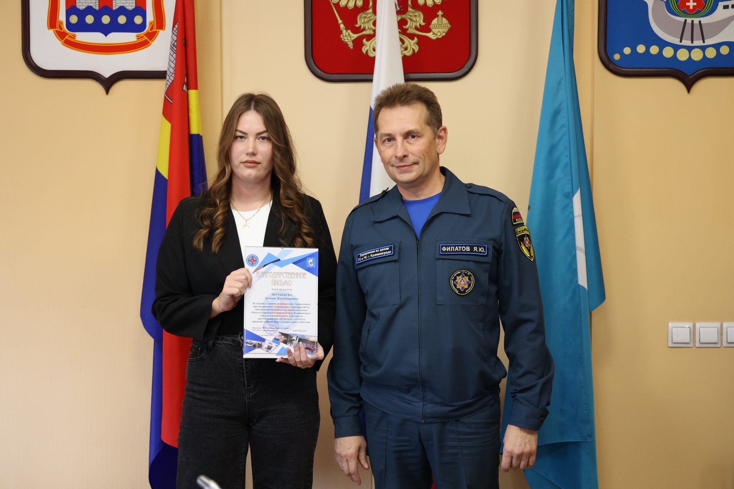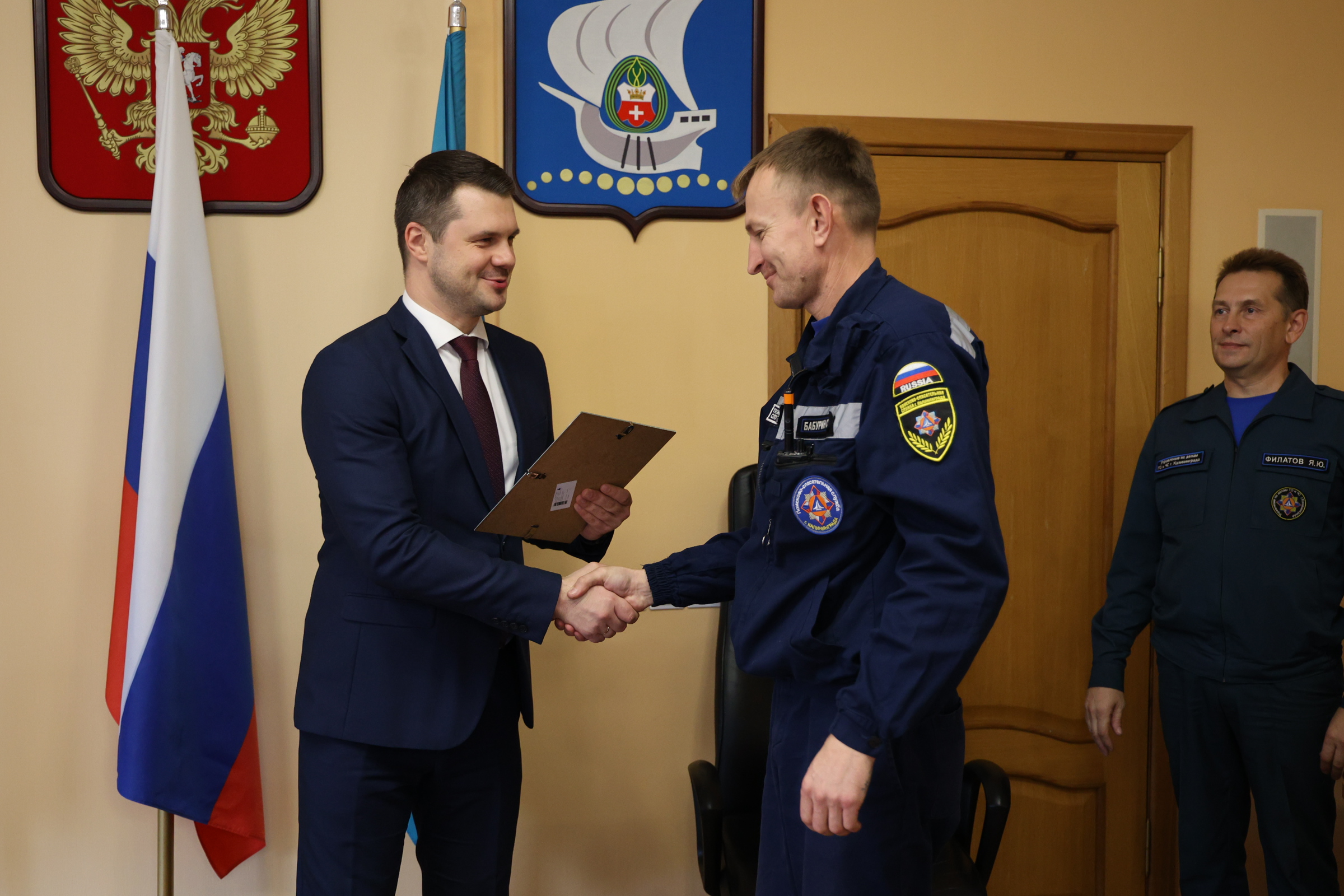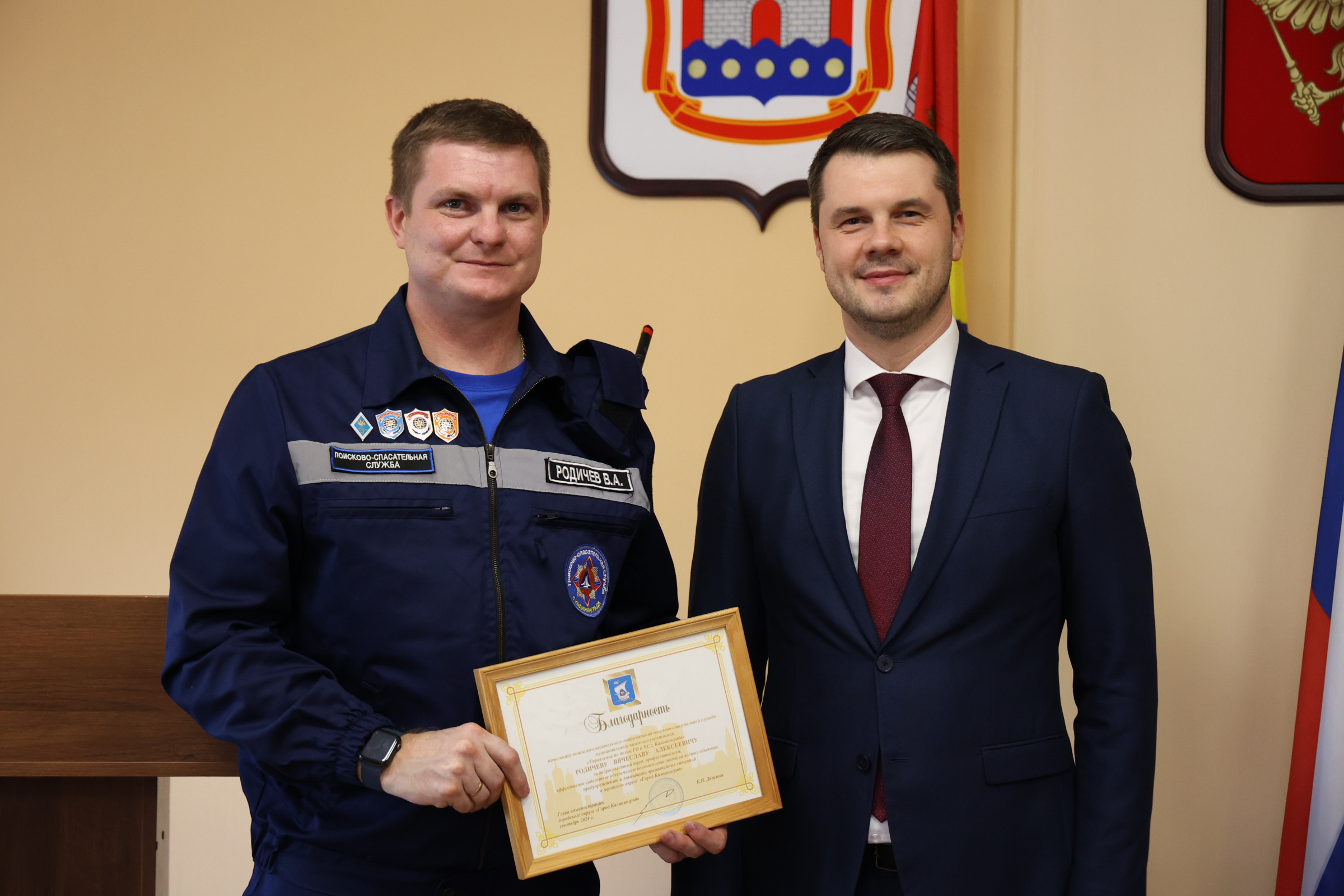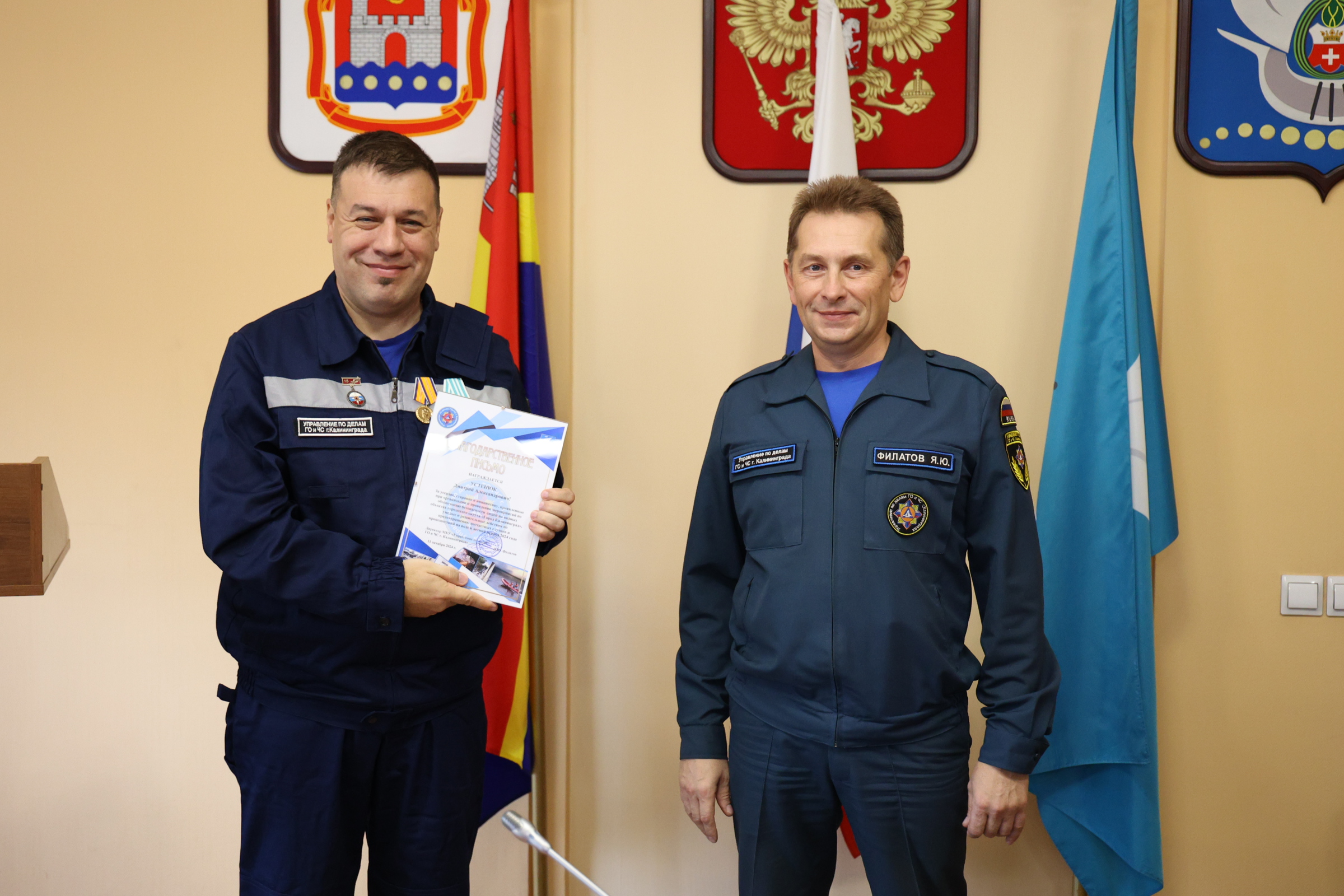 Сегодня и.о. главы администрации Калининграда Алексей Асмыкович вручил Благодарственные письма спасателям, наиболее отличившимся во время прошедшего купального сезона.