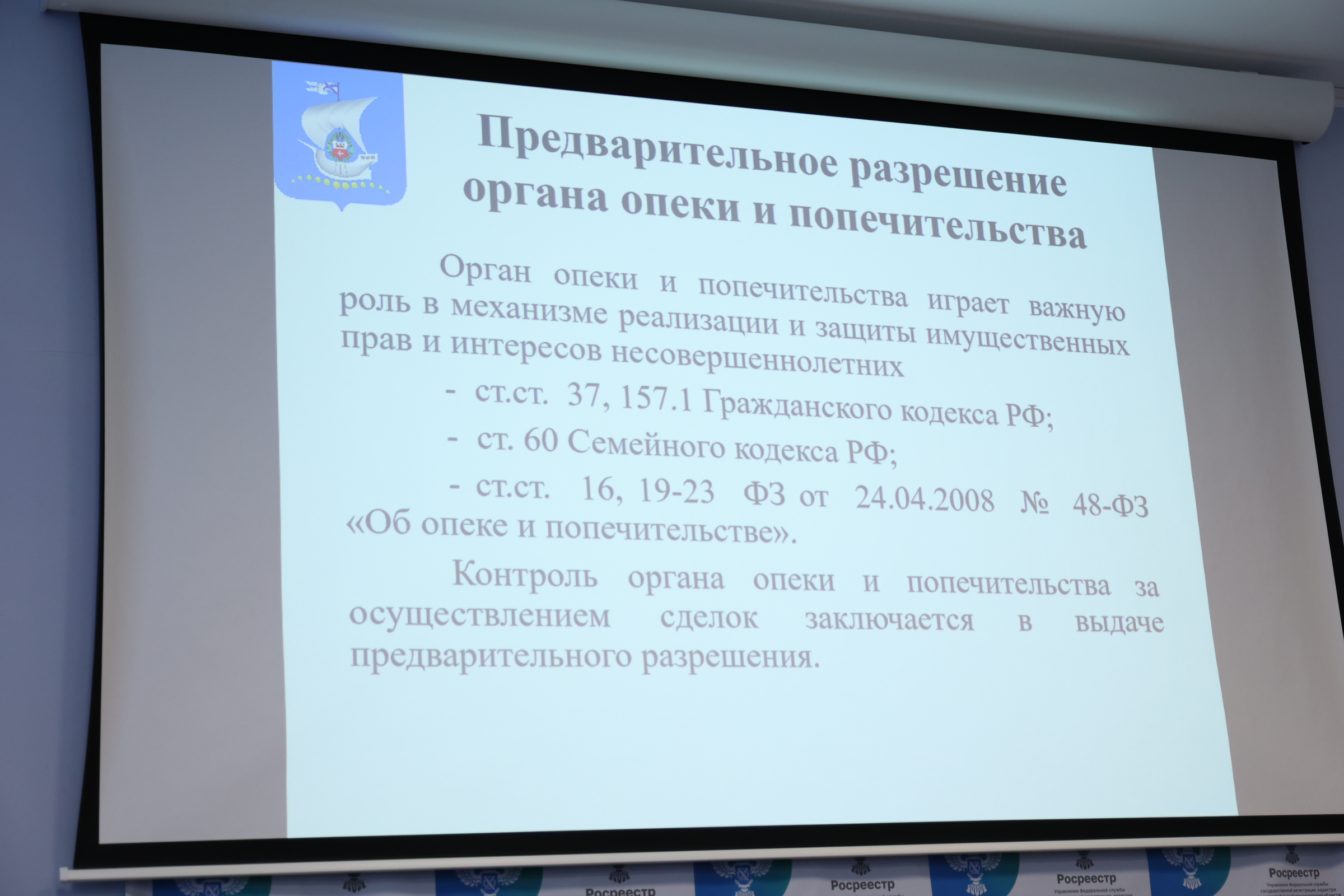 Как отметил в своём докладе Виктор Хвостов заместитель начальника отдела опеки и попечительства над несовершеннолетними администрации Калининграда, орган опеки и попечительства играет важную роль в механизме реализации и защиты имущественных прав и интересов несовершеннолетних. Родители или законные представители при совершении сделок имущественного характера обязаны получить разрешение отдела опеки и попечительства. В разрешении прописаны условия, обязательные к исполнению законными представителями ребенка, чтобы обеспечить соблюдение его прав и интересов. Только оценив все риски и заключив, что права ребёнка не нарушены, отдел опеки выдаёт разрешение. За три квартала текущего года, за данным документом в отдел опеки обратилось 540 семей.