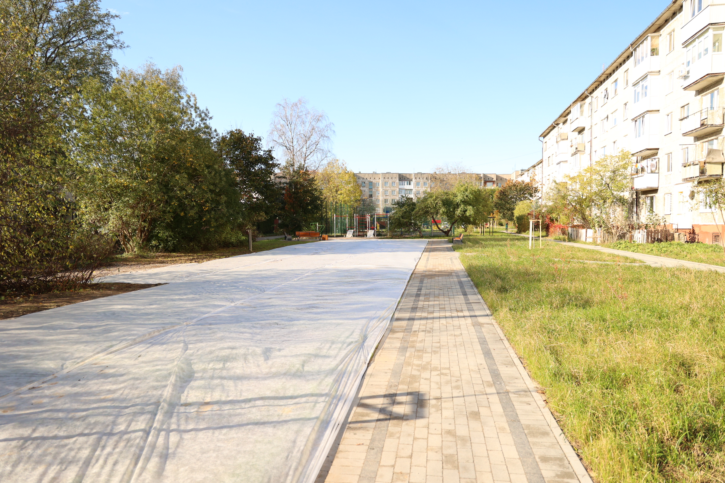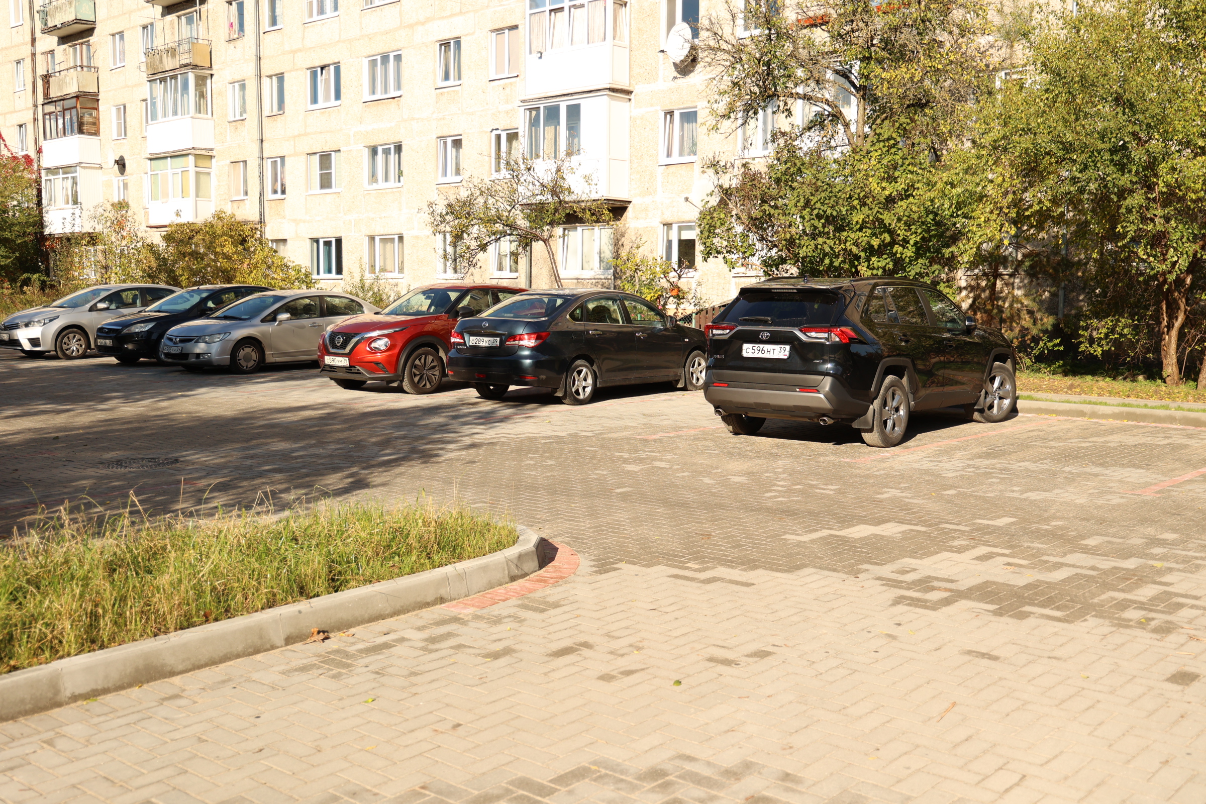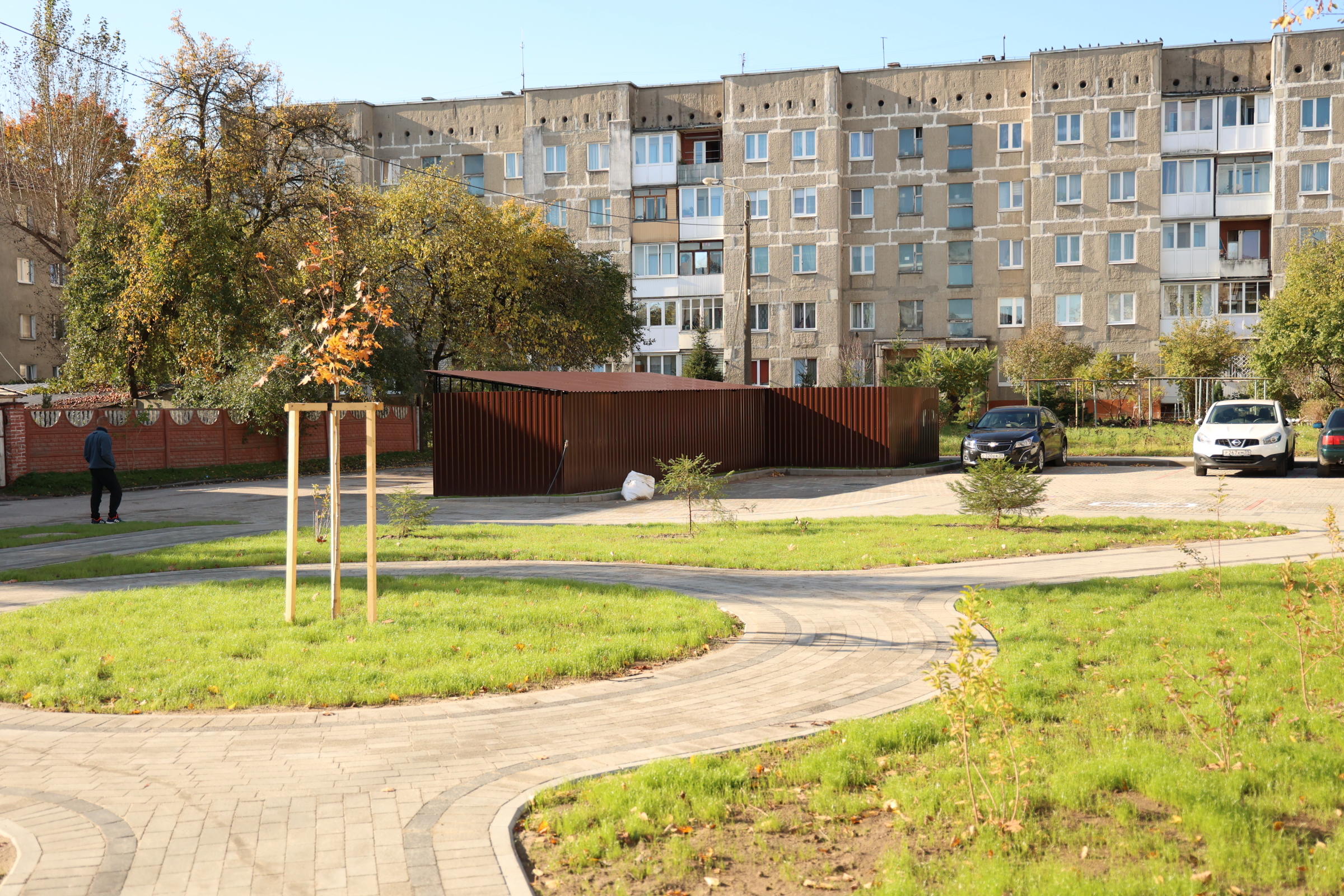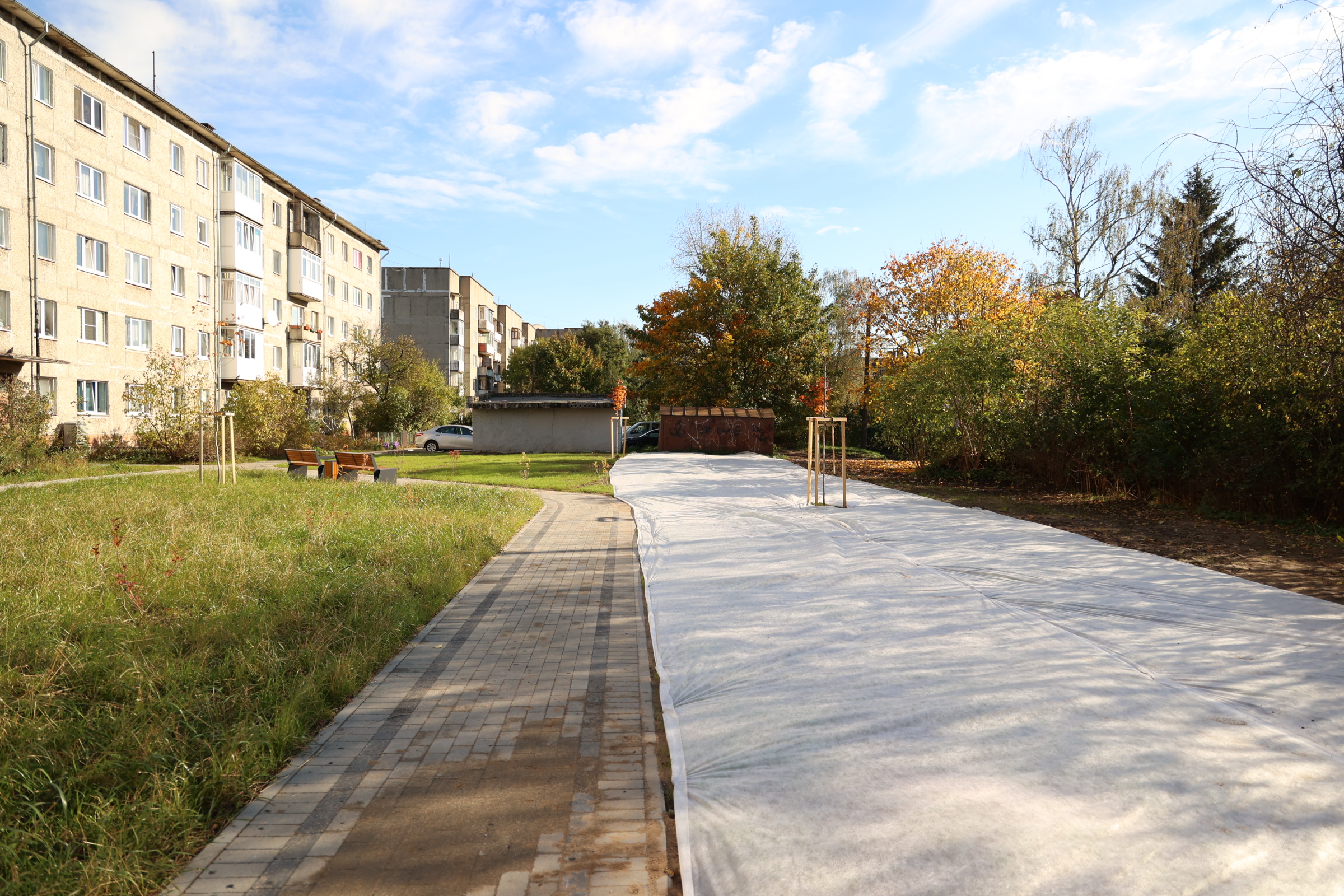 Работы должны были завершиться 10 октября, но фактически уже в начале месяца всё было готово. Двор – довольно большой, площадь обновлённых проездов – около полутора тысяч кв. метров, столько же – площадь выложенных плиткой тротуаров. На площади более 800 кв. метров оборудована парковка. Но самое большое пространство – 2, 5 тысячи кв. метров, отдано под газоны. Высажены 14 клёнов, более 30 кустарников и 20 метров живой изгороди.