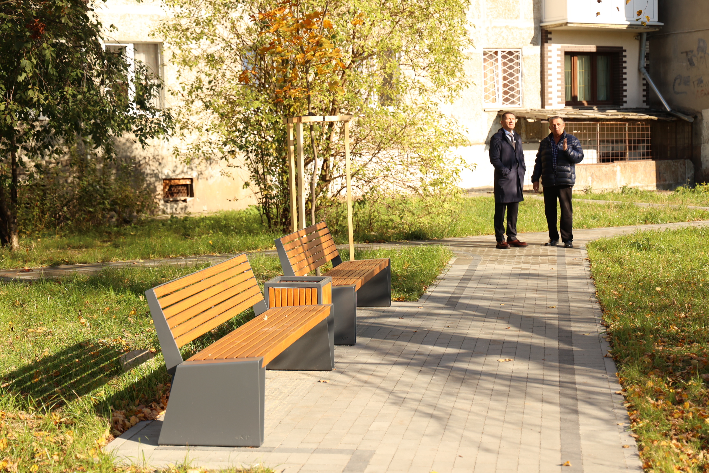 Сегодня, 17 октября, глава города Олег Аминов вместе со специалистами городской администрации проверил, как был благоустроен двор многоквартирных домов №№ 12, 13 и 14 по ул. Островской.