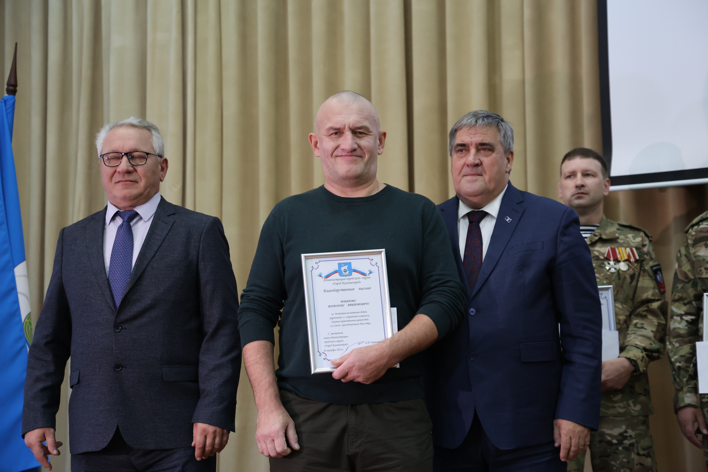 Благодарственные письма главы Калининграда и ценные подарки в этот день получили 10 человек. Один из них Павел, сын советского офицера. Прошёл путь от лейтенанта до майора, пять раз принимал участие в знамённой группе на параде Победы. В послужном списке Павла – командировки в Сирию; дважды за текущий год, в апреле - июле и июле - октябре, с перерывами на отпуск в 2 - 3 недели принимал участие в боевых действиях в зоне проведения специальной военной операции. 20 октября вновь улетает в очередную командировку. Несмотря на сложный путь, Павел остаётся для своих детей в первую очередь – папой, опорой семьи, примером для подражания.