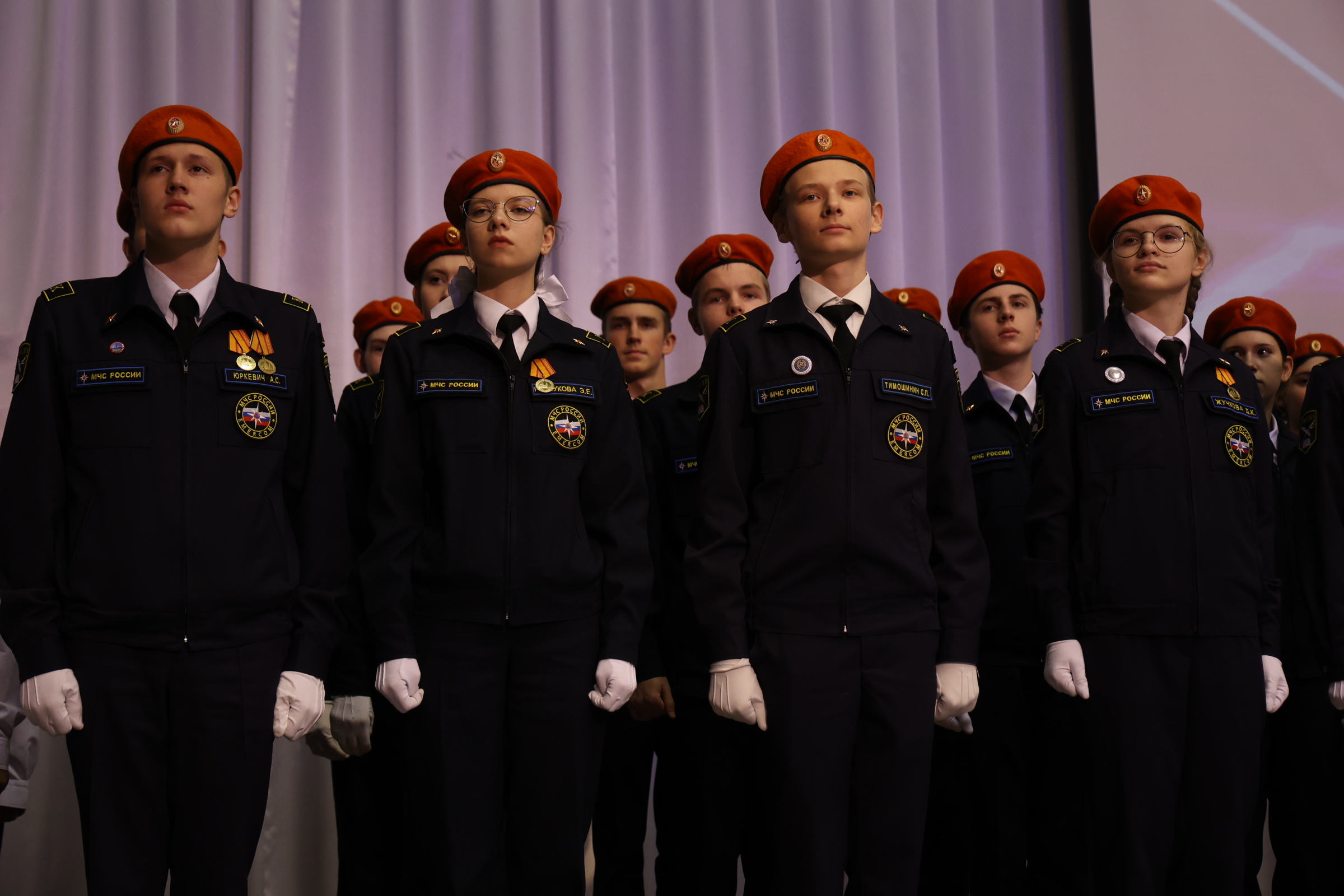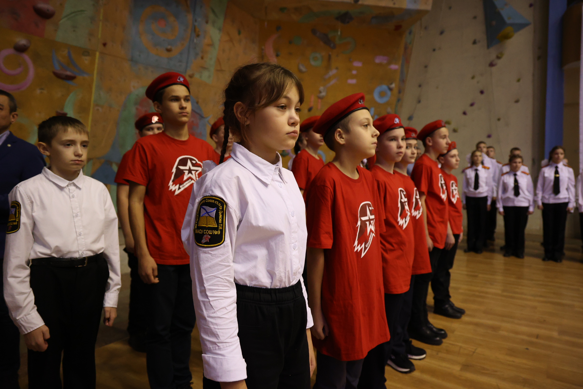 Сегодня в ряды Юнармии вступили ещё 135 учащихся из 14 муниципальных общеобразовательных учреждений. В ходе торжественной церемонии почётные гости вручили ребятам значки юнармейца. Завершилось мероприятие исполнением гимна Юнармии России.