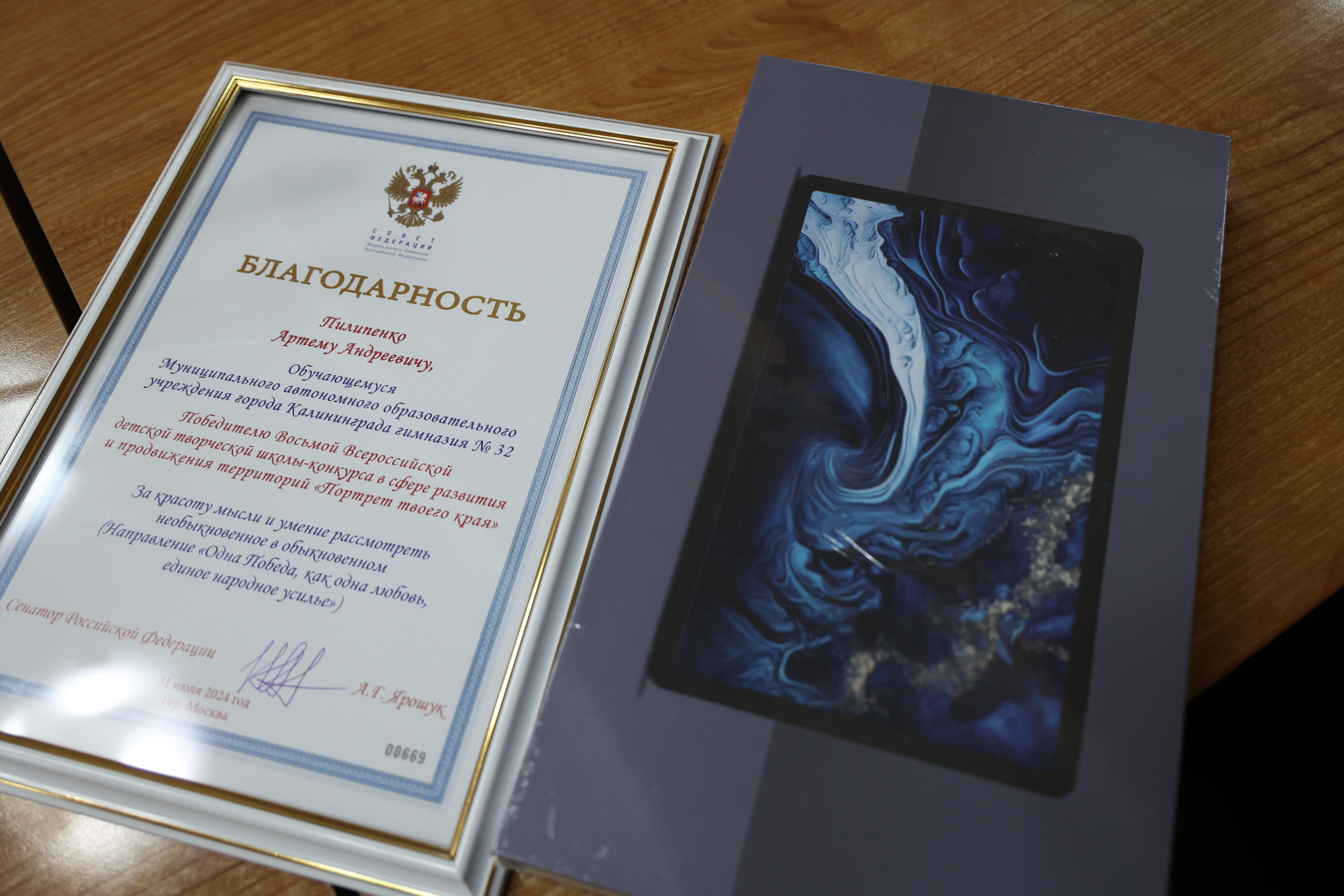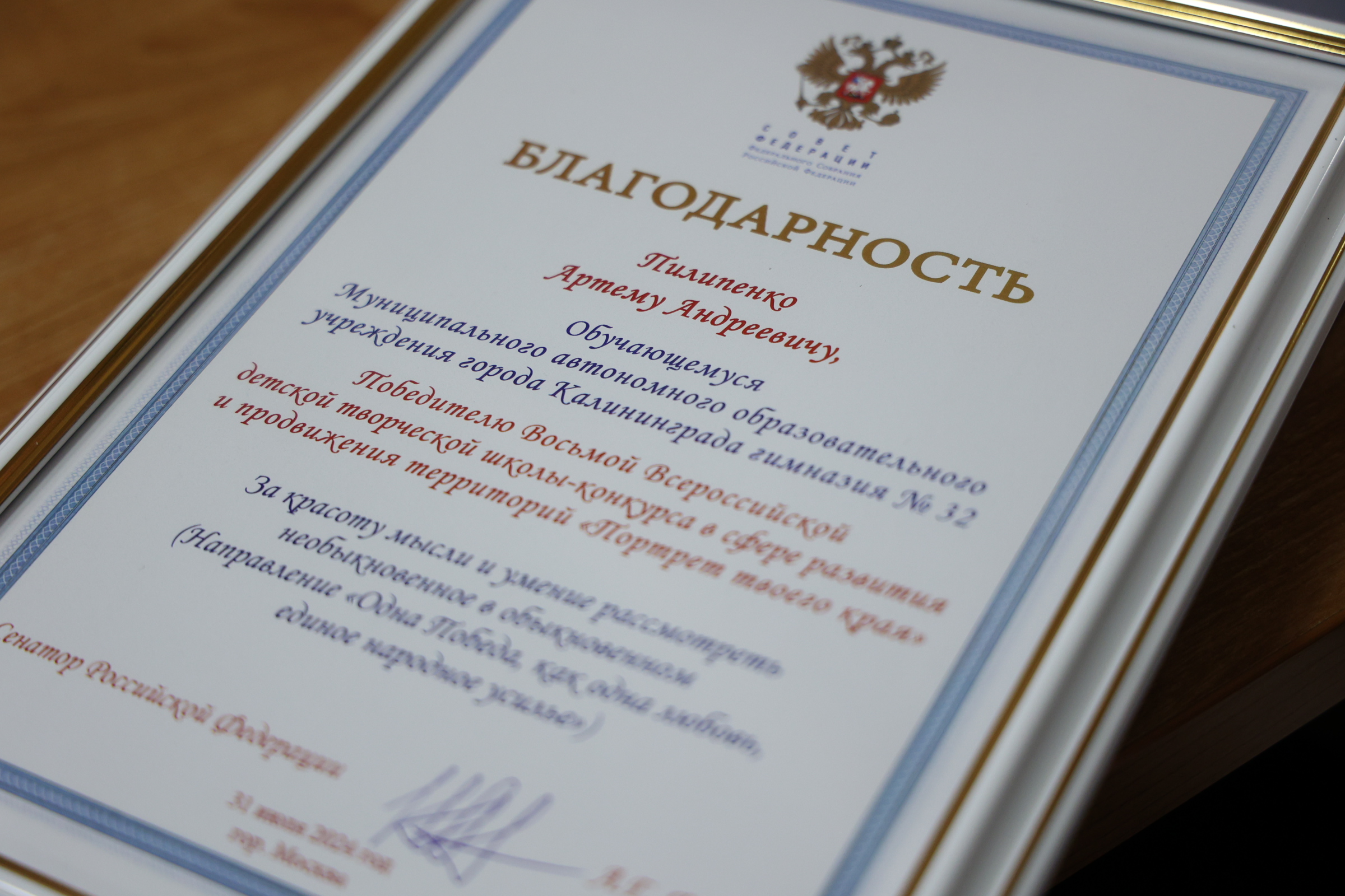Сегодня, 20 ноября, в администрации Калининграда состоялась церемония награждения победителей Всероссийской детской творческой школы-конкурса в сфере развития и продвижения территорий «Портрет твоего края», проходящей при поддержке Совета Федерации Федерального Собрания РФ в субъектах Российской Федерации.