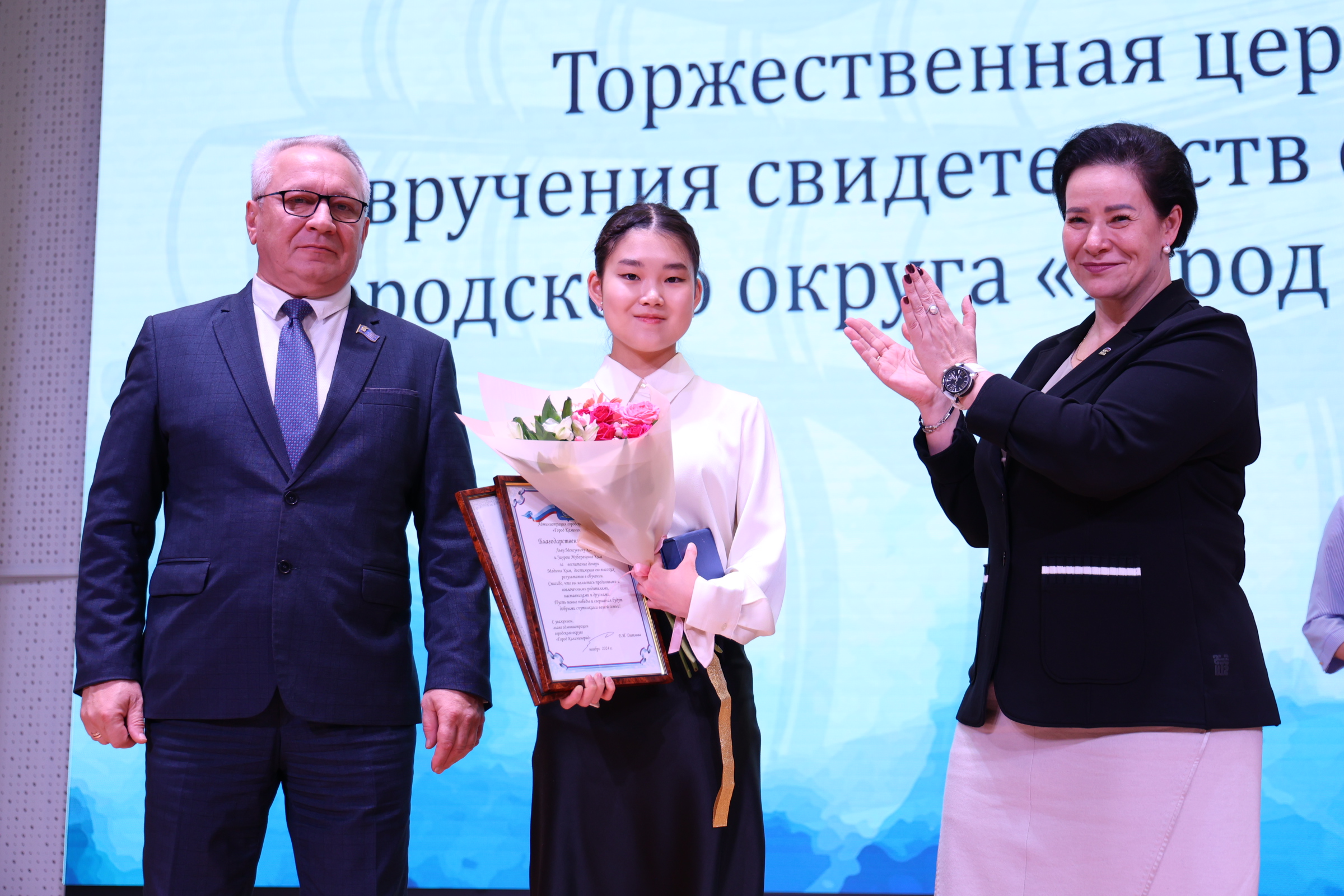 «Сегодня в этом зале будущее нашего города. Вы успешные, талантливые и трудолюбивые. Это огромный совместный труд ваш, ваших педагогов, которые сумели раскрыть потенциал каждого из вас и ваших родителей, которые поддерживают и верят в вас. Мы в свою очередь продолжаем создавать условия, чтобы каждый талантливый ребенок смог реализовать свой уникальный потенциал, а у преподавателей были современные учебные площадки для развития ваших способностей», - приветствуя ребят, педагогов и родителей, сказала Елена Дятлова.